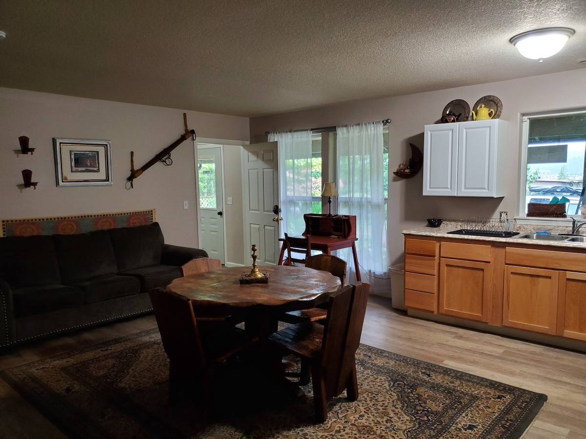 Cartierul spațios și privat pentru oaspeți 1BR/1BA într-o casă (soțul meu și cu mine locuim alături) este situat la doar 3 km de centrul orașului Friday Harbor. Este situat convenabil la tot ceea ce are de oferit insula. Spațiul de locuit de 872 mp îți oferă spațiu pentru întindere și relaxare. Ne pare rău, animalele de companie/bebelușii nu sunt permiși. Bucură-te de o cadă cu hidromasaj imensă din camera bonus pentru a contempla sau medita. Avem 2 acri de cadru de parc pentru a vă bucura de timpul petrecut pe insulă! Numărul autorizației LANDUSE-19-0129