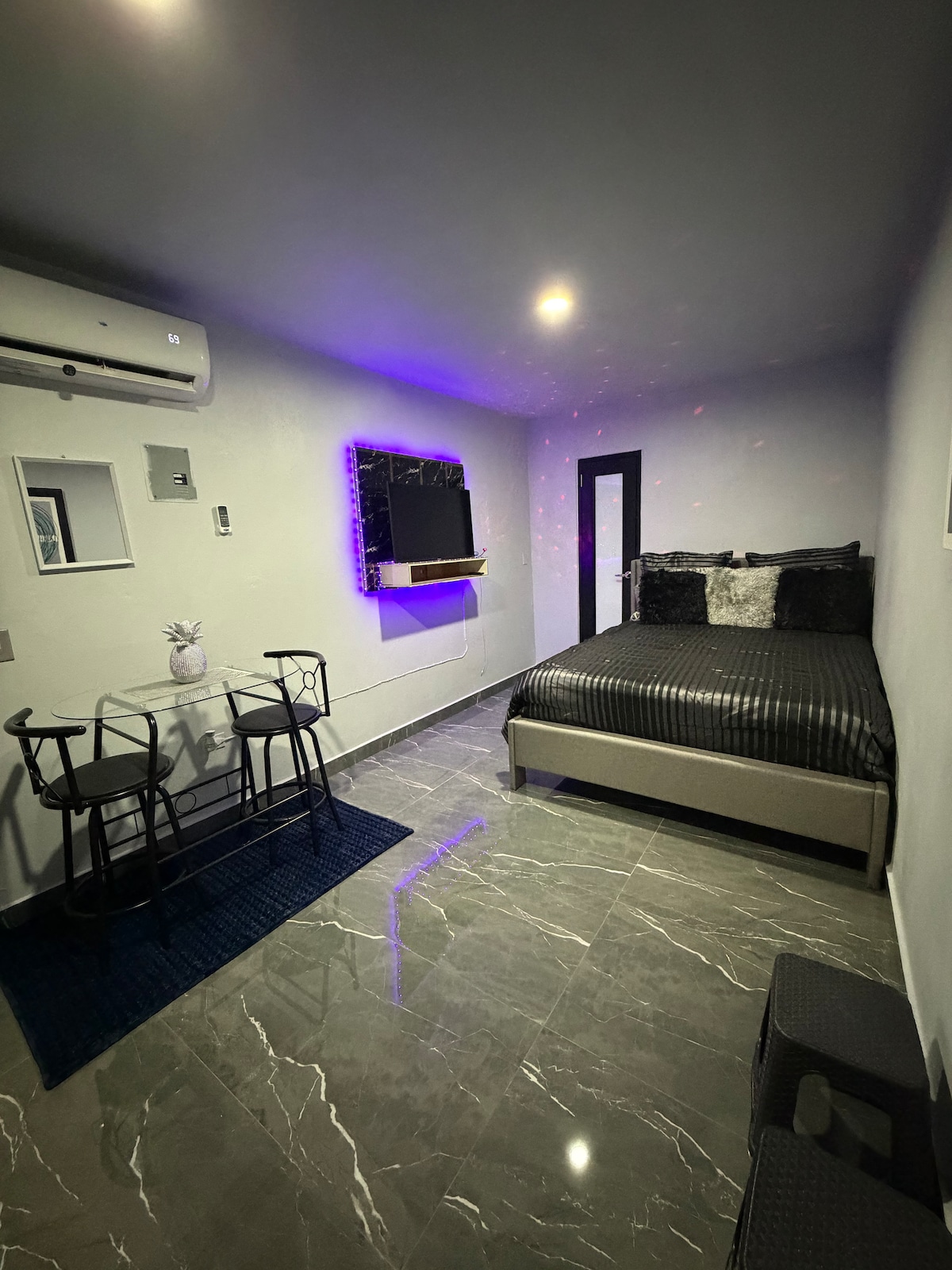 Escapa de la rutina en Tropical Hidden Studio, un guest house diseñado para parejas que buscan reconectar y relajarse. Ubicado céntricamente en Trujillo Alto, este espacio íntimo cuenta con jacuzzi y un proyector gigante para una experiencia tipo cine. Perfecto para escapadas románticas, celebraciones especiales o trabajar remoto en un ambiente diferente con un wifi de 800 megas de velocidad. Aquí no solo te hospedas… te desconectas y recargas.