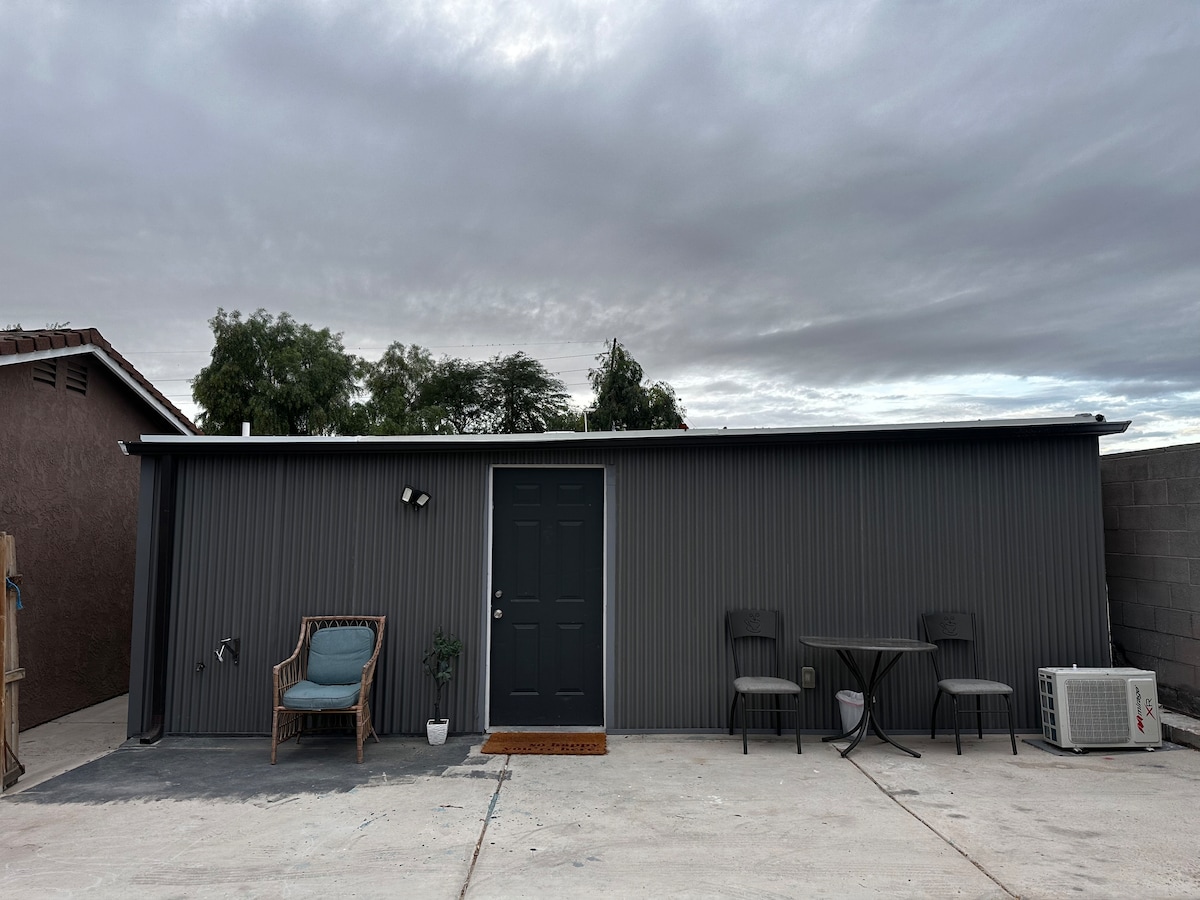 Casa noastră de oaspeți în stil sud-vestic este un apartament studio privat, dotat cu bucătărie și baie. Avem un pat matrimonial confortabil. Casa noastră de oaspeți liniștită are acces excelent la autostradă și se află la cinci minute de mers cu mașina de majoritatea atracțiilor Yuma (râul Colorado, cafenelele pitorești, magazinele, restaurantele excelente și cinematograful din orașul vechi Yuma). Podeaua cu gresie și împrejmuită în curtea din spate o fac un loc ideal pentru cei care călătoresc cu animale de companie.