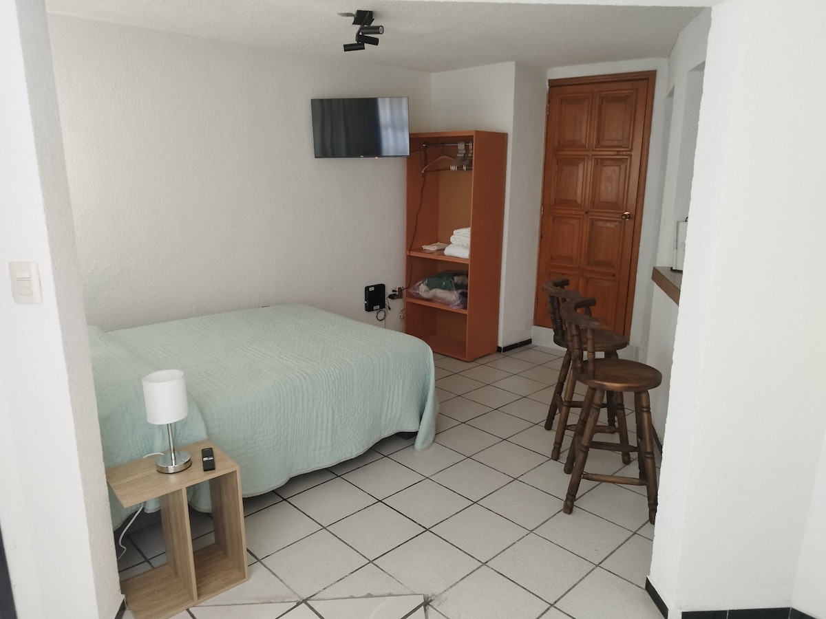 SITUAT LA PRIMUL ETAJ, ARE UN DORMITOR CU PAT DUBLU, DULAP, TV, CABLU, INTERNET. BUCĂTĂRIE DOTATĂ CU GRĂTAR CU INDUCȚIE, CHIUVETĂ, FRIGIDER, CUPTOR CU MICROUNDE, BAR PENTRU MICUL DEJUN. BAIE COMPLETĂ INTEGRATĂ ÎN DORMITORUL BINE LUMINAT ȘI VENTILAT. ESTE SITUAT ÎN SUDUL ORAȘULUI, ÎNTR-UN CARTIER FOARTE LINIȘTIT, LA 300 M DE SALVADOR NAVA, LA 5 MINUTE ÎN PERIFERICO ȘI ÎN PARQUE TANGAMANGA, LA 10-15 MINUTE DE CENTRUL ORAȘULUI. NU EXISTĂ PARCARE. FĂRĂ ANIMALE DE COMPANIE