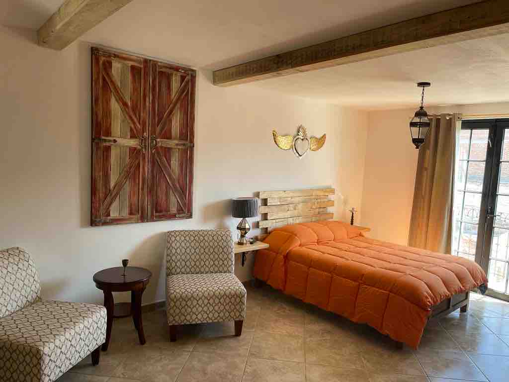 Respectăm recomandările Airbnb pentru siguranța ta, igienizăm toate zonele. Loft spațios de 90 mp, stil propriu și confortabil, living, sufragerie, bucătărie, pat king size, se află la etajul 2 al proprietății, cu acces la terasa de pe acoperiș. La 2 străzi de centrul istoric și de parohia San Miguel de Allende și la o jumătate de stradă de piața de artizanat, liniștit pentru odihna ta, mobilat cu tot ce ai nevoie. Aici toți sunt Bienvenidos pentru un sejur liniștit.