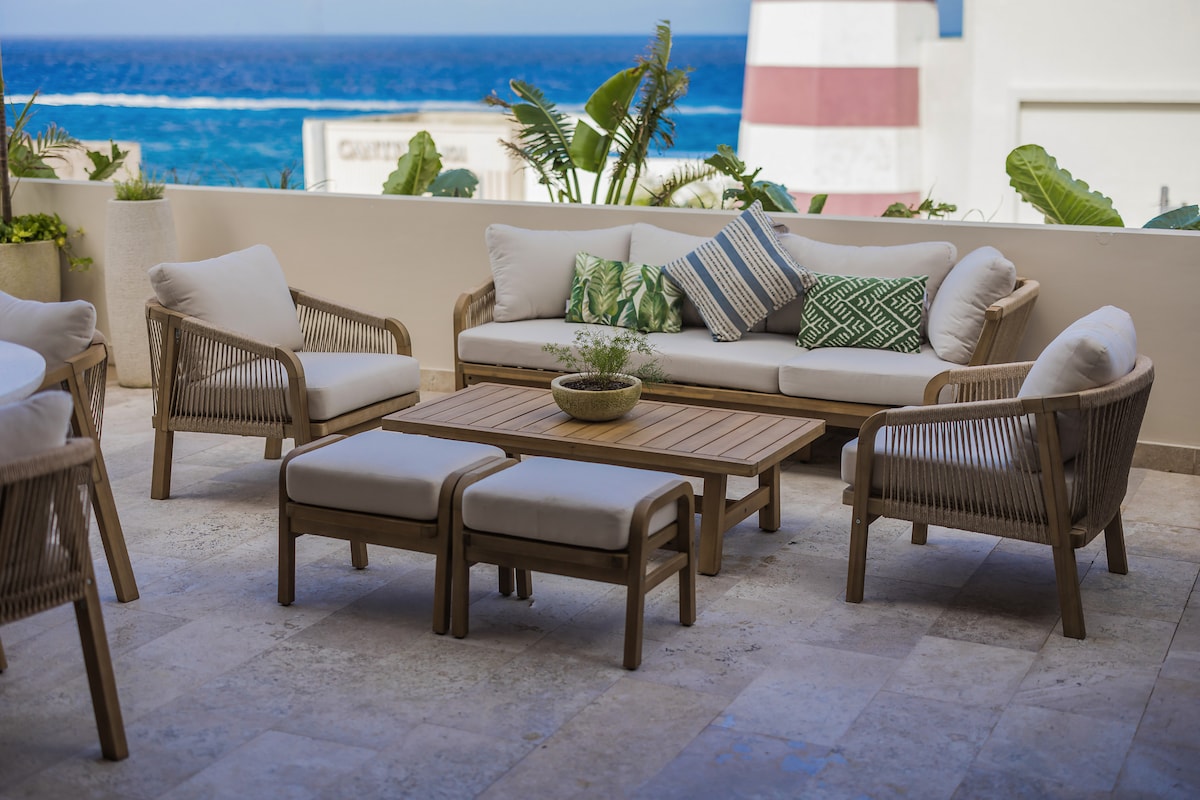 Priveliști răcoroase din Caraibe din apartamentul nostru colonial modern de pe malul oceanului, situat în inima orașului Cozumel. Bucură-te de briza caraibiană așezată pe balconul din fața oceanului sau urmărește Carnavalul de la balconul de pe stradă. Mergi pe jos până la restaurante, magazine. Vedere frumoasă la ocean. Accesul la plajă este la 1/2 cvartal distanță. Am inclus un birou pentru cei care au nevoie de un spațiu de lucru.