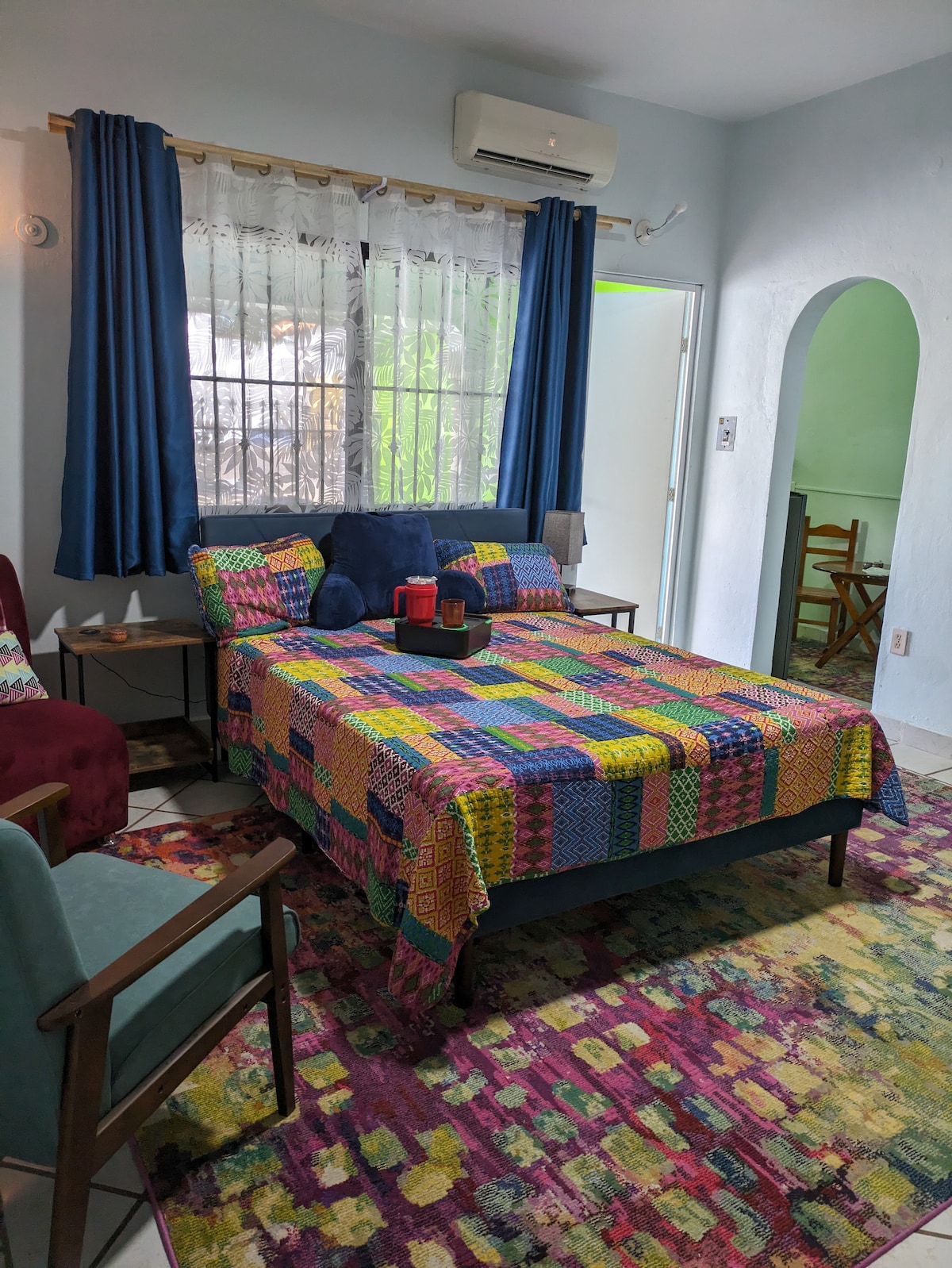 Perfect pentru iubitorii de plajă și natură care caută o escapadă liniștită! Una dintre cele mai bune locații private de pe insulă, cu acces direct la o plajă de nisip unde te poți bucura de sporturi nautice sau pur și simplu te poți relaxa pe țărm. La doar 5 minute de mers cu mașina de zona centrală a orașului Cozumel. Acest apartament recent renovat are tot ce trebuie pentru o ședere confortabilă, inclusiv: o terasă deschisă în aer liber, un studio mare, baie privată, aer condiționat, smart TV, Wi-Fi și o chicinetă plină cu aparate noi.