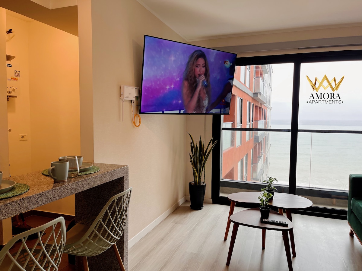 Apartamentul nostru este unul dintre puținele din zonă care are o vedere frumoasă directă și panoramică asupra Oceanului Pacific, se bucură de liniștea sunetului mării și de apusurile de soare impresionante, este confortabil, bine luminat și decorat, bucătăria este echipată cu tot ce ai nevoie, pentru un sejur perfect, apartamentul are WiFi puternic și cablu 02 Smart TV. Clădirea are zone comune; 02 piscine: (adulți și copii), grătare, lounge bar, sală de ședințe, sală de gimnastică și zonă de jogging.