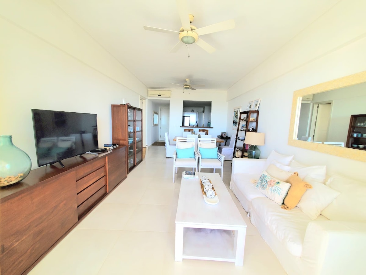 Ven a disfrutar con toda tú familia de este hermoso apartamento, espacioso con una hermosa vista al mar, con hermosa playa todo acondicionado, con área de juegos al aire libre para los niños, piscina, área dé ping-pong, restaurante privado, también cuenta con un excelente teatro en casa con pantalla gigante para ver películas o lo que deseen. La habitación principal cuenta con televisión , las 3 habitaciones Tiene Bańo privado.