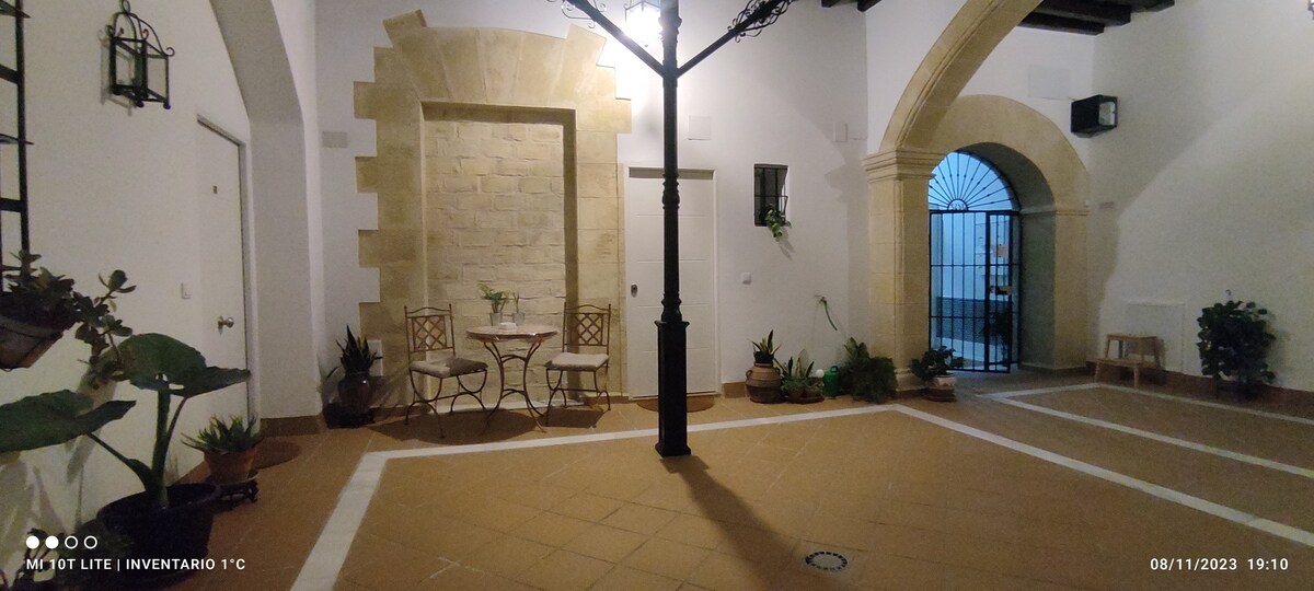 Loft en antigua bodega con gran patio y claustro del siglo XIX, rehabilitada recientemente, situado solo a 5 minutos paseando del centro de Jerez de la Frontera. Conserva todo el encanto de la bodega original tanto en sus vigas de madera como en las paredes de piedras. Dispone también de porche y aparcamiento privado en la misma bodega. Inscrito en el Registro de Turismo de Andalucía VFT/CA/02651