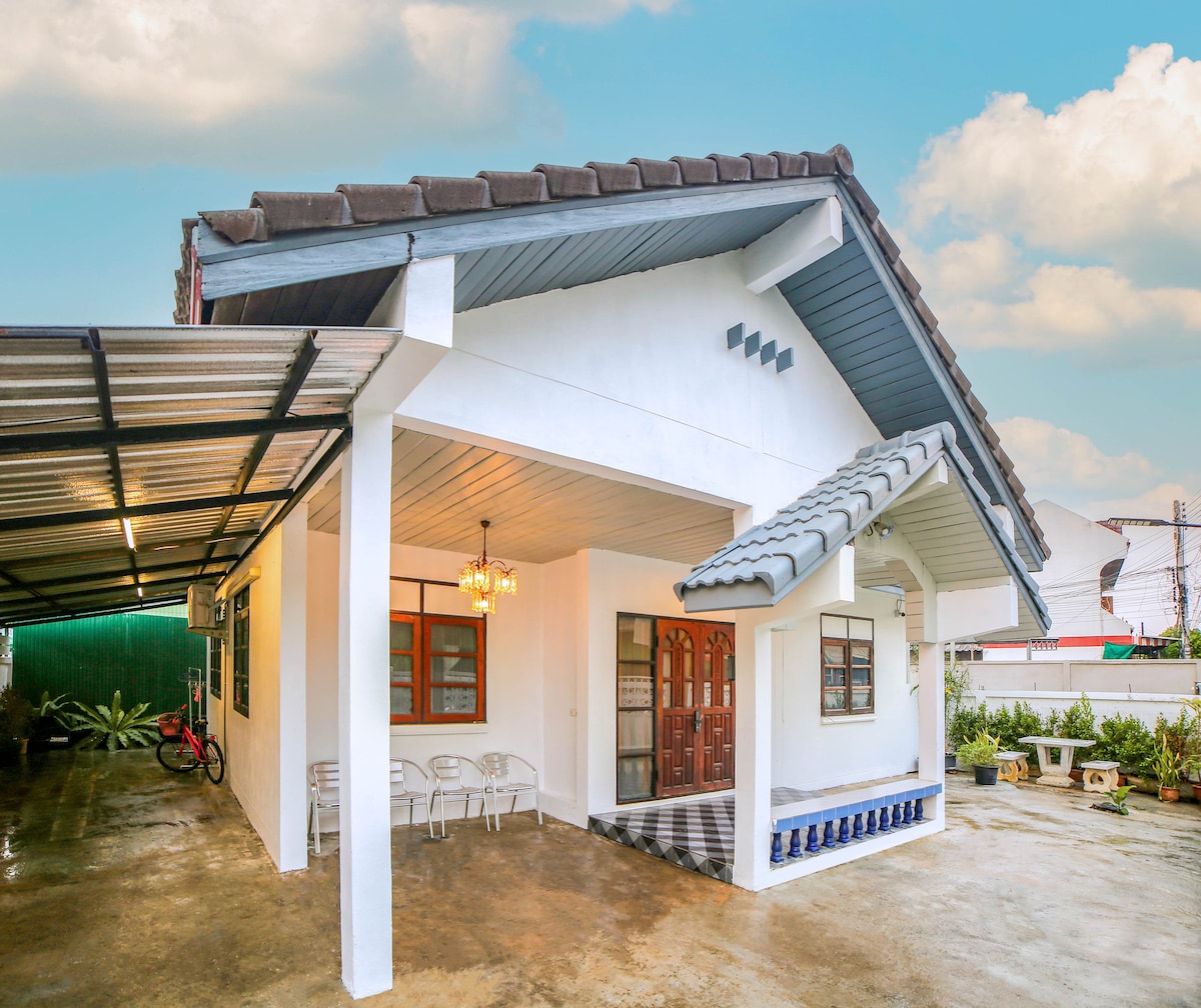 O casă elegantă și curată, cu 3 etaje, în locația principală din Chiang Mai, oferind un spațiu mare și confortabil, siguranță și liniște. Situat convenabil în apropierea punctelor preferate ale turiștilor; 5 minute de mers pe jos până la mall-ul MAYA și zona Nimman 5 minute cu mașina până la zona veche a orașului, strada pietonală de duminică 10 minute de condus până la aeroport, Universitatea Chiang Mai, bazar de noapte 20 de minute de mers cu mașina până la Doi Suthep O casă întreagă confortabilă, cu 3 dormitoare și 3 băi, excelentă pentru un grup mare de prieteni și familie.