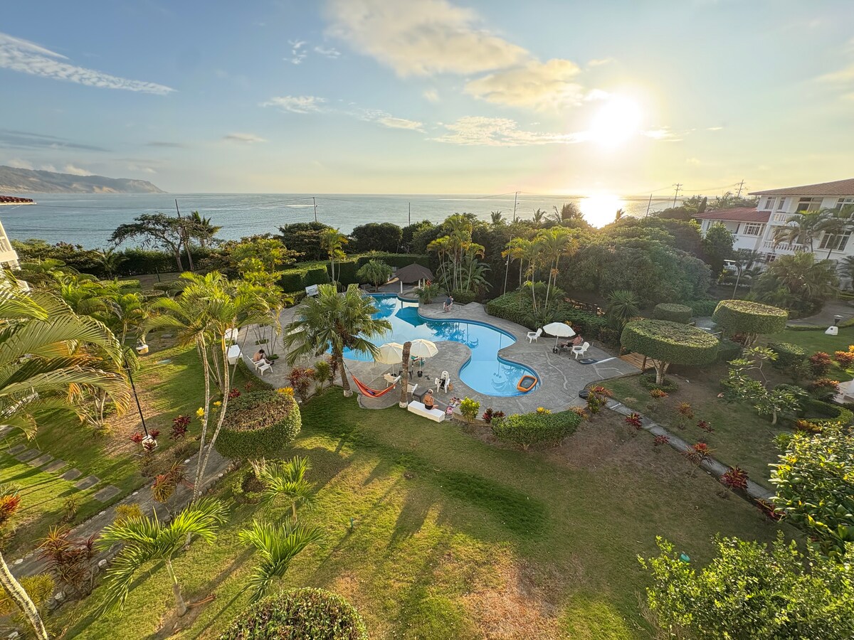 Acesta este un apartament privat luminos și confortabil, cu vederi spectaculoase asupra oceanului. În 2010, a primit o recunoaștere din partea oficialilor orașului ca fiind cea mai frumoasă reședință din Bahía de Caráquez. Apartamentul este spațios, cu 2 băi complete și 3 dormitoare, fiecare cu o unitate de aer condiționat. Zona de living și de servit sunt complet mobilate. Vei avea acces deplin la bucătărie pentru a-ți pregăti propriile mese. Există, de asemenea, un balcon cu vedere la ocean, locul perfect pentru a admira apusul de soare.