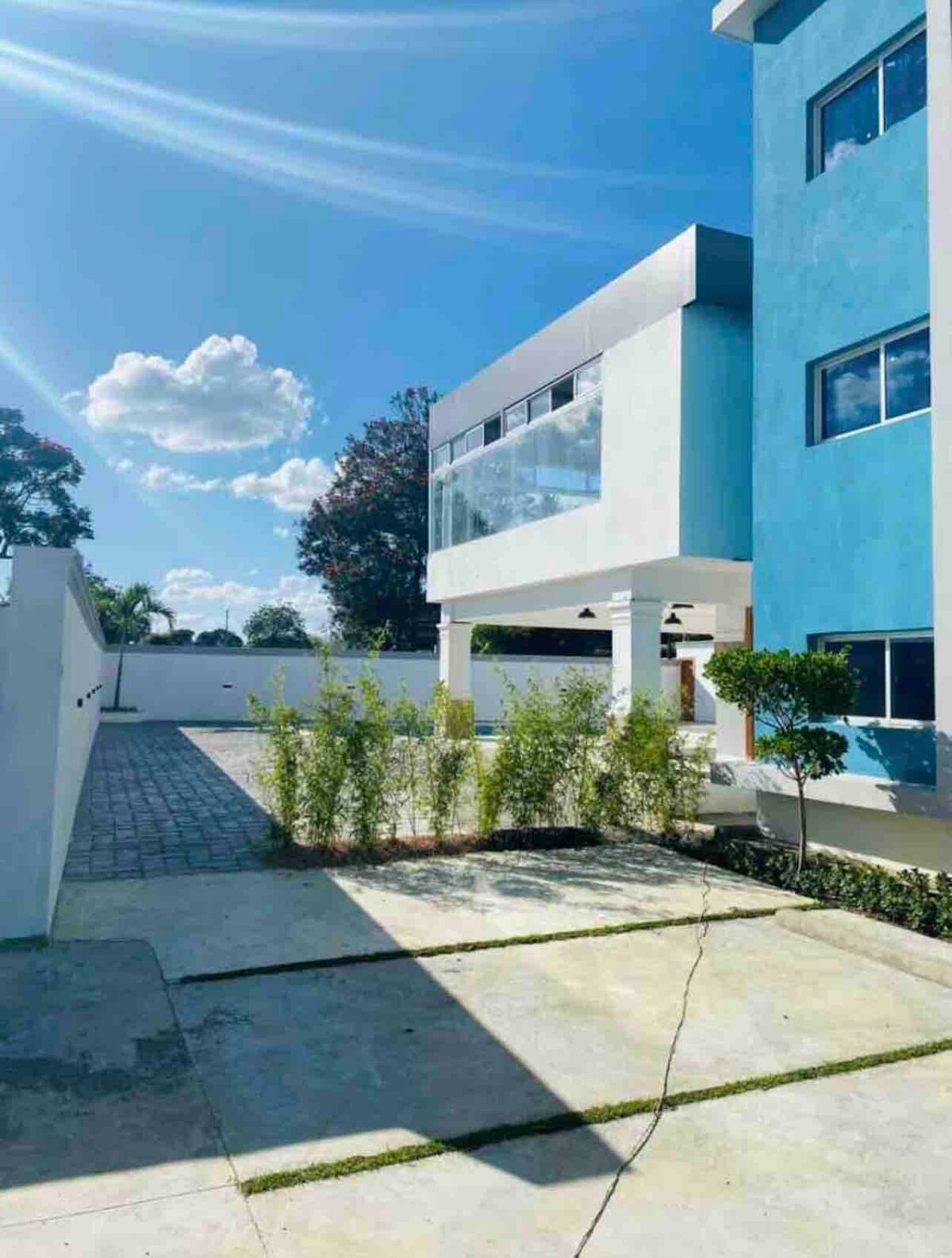 Te invităm să te relaxezi și să te bucuri ca un cuplu sau o familie în acest apartament modern și confortabil situat în Juan López , Moca. Spațiu 3 dormitoare, dormitor matrimonial matrimonial și dulap și baie. 2 dormitoare matrimoniale. Living cu TV, Wi-Fi, sufragerie, bucătărie și balcon cu vedere la piscină. 2 locuri de parcare, zonă spațioasă de recreere cu piscină și sală de gimnastică.