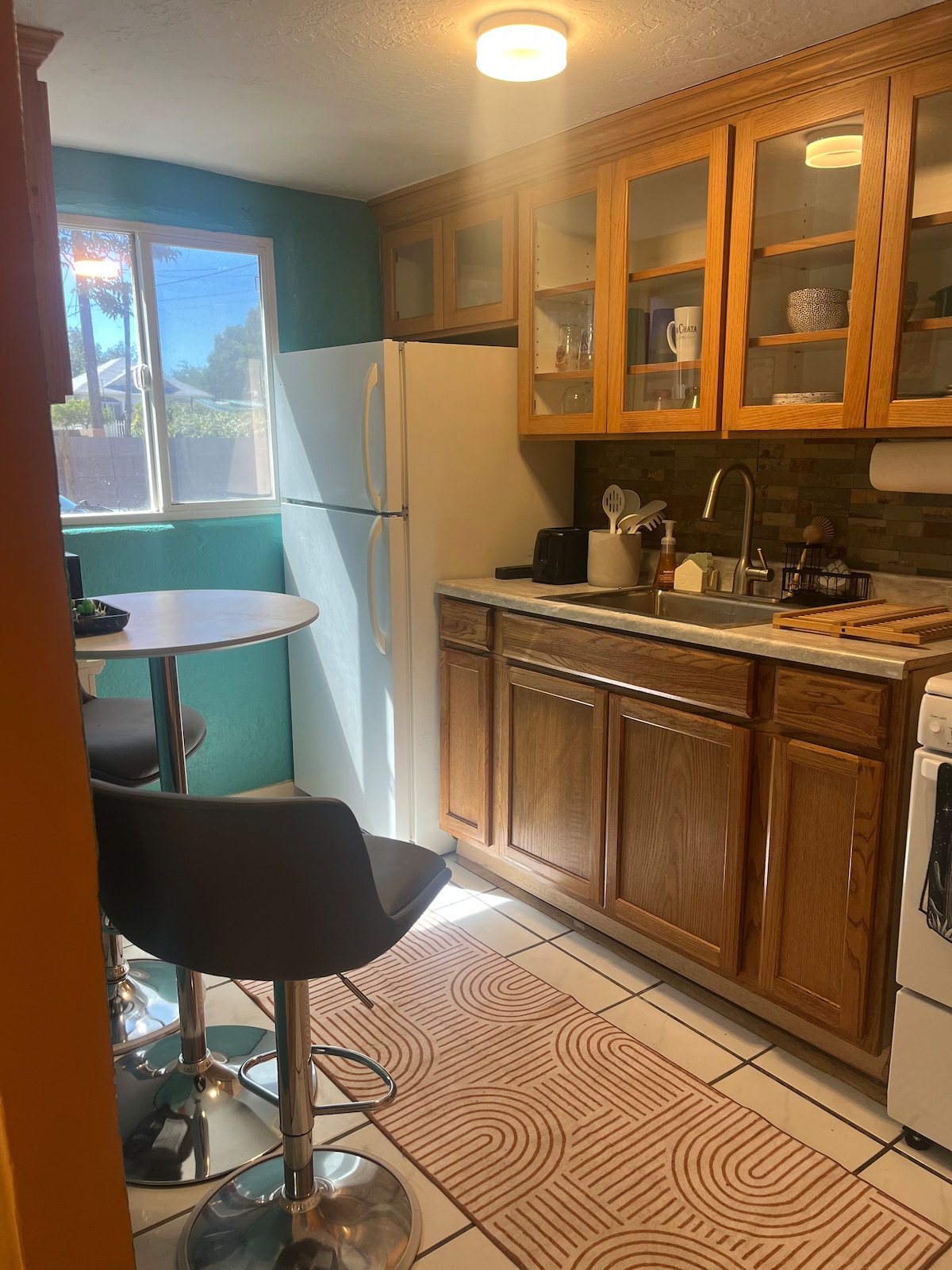 Bine ai venit în fermecătorul și centrul nostru 1Br/1Bth Casita la est de centrul orașului Albuquerque. Acest refugiu urban încântător oferă un amestec perfect de confort și comoditate, oferindu-ți un sejur de neuitat în Țara Încântării. Casita are o cadă cu hidromasaj privată confortabilă, iar pentru cei care iubesc cafeaua de dimineață sau o ceașcă încântătoare de ceai, cafeneaua noastră gratuită este aprovizionată cu o selecție de cafele și ceaiuri și o varietate de gustări pentru a vă energiza ziua pentru orice aventuri!
