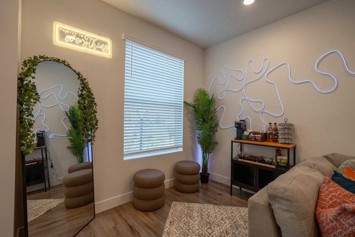 Acesta este locul potrivit pentru a aduce familia împreună. Petrece timp în livingul/bucătăria mare, seara de film pe televizorul 4K de 82", nopți răcoroase de vară pe terasă, cu vedere uimitoare la oraș, o cadă cu HIDROMASAJ comună și multe altele! Nu am precupețit nicio cheltuială pentru a face din acest spațiu cel mai confortabil și mai bine amenajat din zonă și suntem încântați să te găzduim aici, în frumoasa Draper! La doar 4 minute de autostradă și atât de multe atracții unice din apropiere, pe tot parcursul anului!