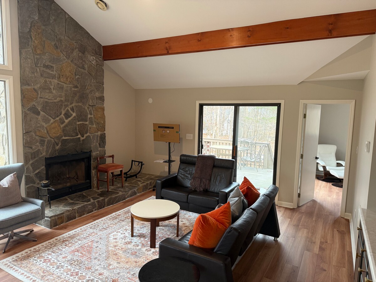 La câteva minute de restaurante/cumpărături, această cabană confortabilă se află în fața unei ferme de capre de lucru, menținând în același timp o intrare/curte privată. Prietenos cu persoanele cu handicap, inclusiv cu mașina pavată, uși largi, duș cu intrare zero, fără scări. Dotări moderne. 16x80 Dog Run. Stâncă pe verandă, joacă-te în curte, vezi caii la o plimbare până la iaz (nu se vede din cabană). Traseul împădurit accesibil din iaz este de 0,7 mile. Consultă regulile casei/animalelor de companie înainte de a face o rezervare.