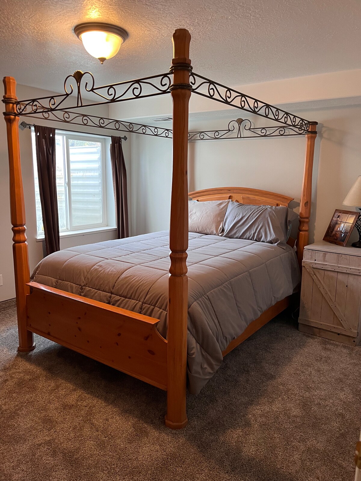 Acest spațiu poate găzdui confortabil 4 adulți, permitem până la 6 dacă unii dintre ei sunt copii. Locul perfect pentru a evada! Acces ușor la Skyline Dr., locul perfect pentru distracție în aer liber, călărie cu ATV-ul, pescuit, ciclism montan, snowmobil. De asemenea, aproape de Maple Canyon pentru alpiniști. Acest apartament la subsol cu 2 dormitoare, 1 baie, complet mobilat, este un loc de cazare perfect, bucurându-te în același timp de aerul curat și proaspăt al țării. Bucătărie complet mobilată și aragaz confortabil cu lemne. Vino să vizitezi!