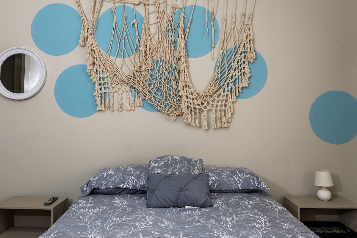 Relaxați-vă în acest spațiu liniștit și elegant. cameră cu pat dublu, wifi, televizor cu Netflix, baie privată, aer condiționat, zonă foarte exclusivistă într-un circuit închis, cu securitate de 24 de ore pe zi zonă foarte sigură, aproape de centrul comercial Galleries del Valle și la 2 străzi de restaurante, cum ar fi Dennys, Pizza Hut, Kfc. Nu există parcare.