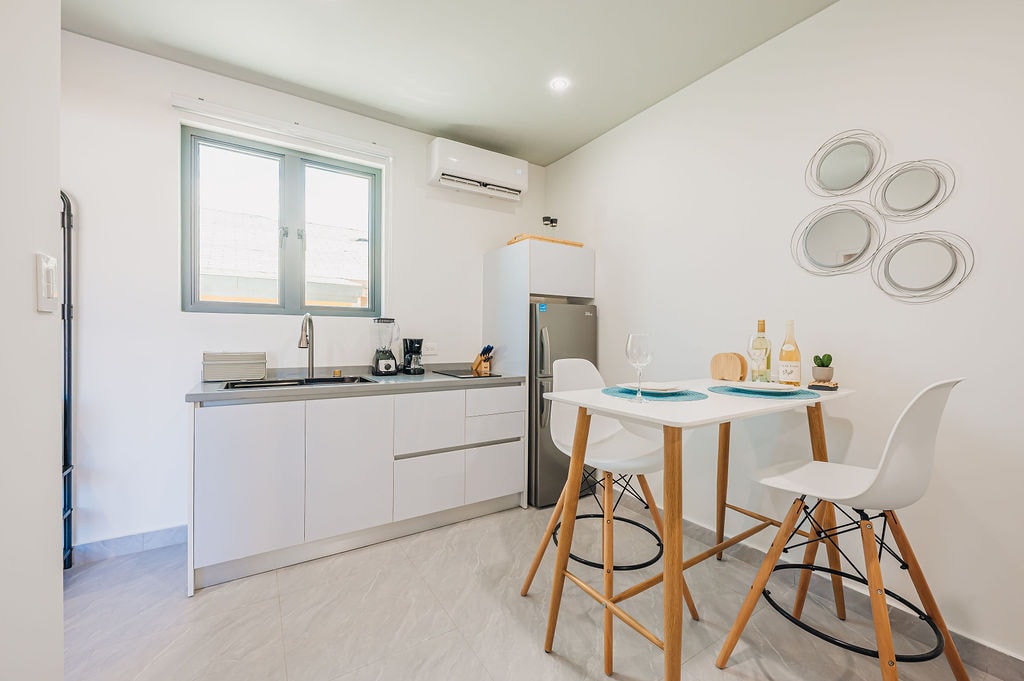 Completely new suite with an oceanfront view. You will be able to experience some of the most beautiful sunsets on the island firsthand! Outside facilities include a gazebo, hammock and dock providing easy access to the ocean, ideal for swimming. Kayaks and snorkeling gear are also available free of charge! Located at a relatively quiet part of the island, known as a prominent fishing area. Some of the best seafood restaurants are located on the same street (Zeerovers and Flying Fishbone).