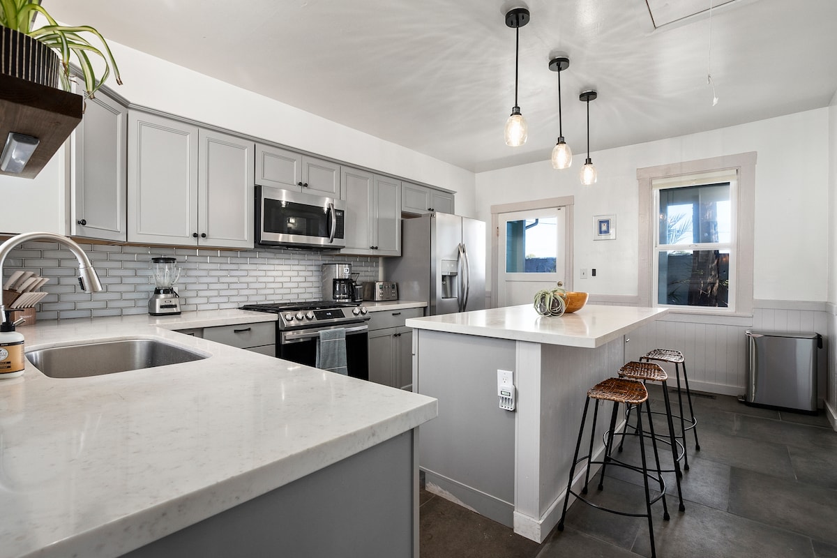 Evadează la Beach Hill Hideaway, o casă de coastă de 2.000 de metri pătrați, cu 3 dormitoare/2 băi, în Santa Cruz. Perfect pentru familii și prieteni, acest refugiu elegant se potrivește confortabil grupului tău și se află la doar câțiva pași de promenada de pe plajă, debarcader și centrul orașului. Bucură-te de o bucătărie complet utilată, parcare gratuită în incintă, încărcător EV, aer condiționat, duș în aer liber, grătar și vatră, TV cu Roku, pian, cărți/jocuri, covorașe de yoga și spațiu de lucru dedicat. Mergi peste tot de la această locație excelentă!
