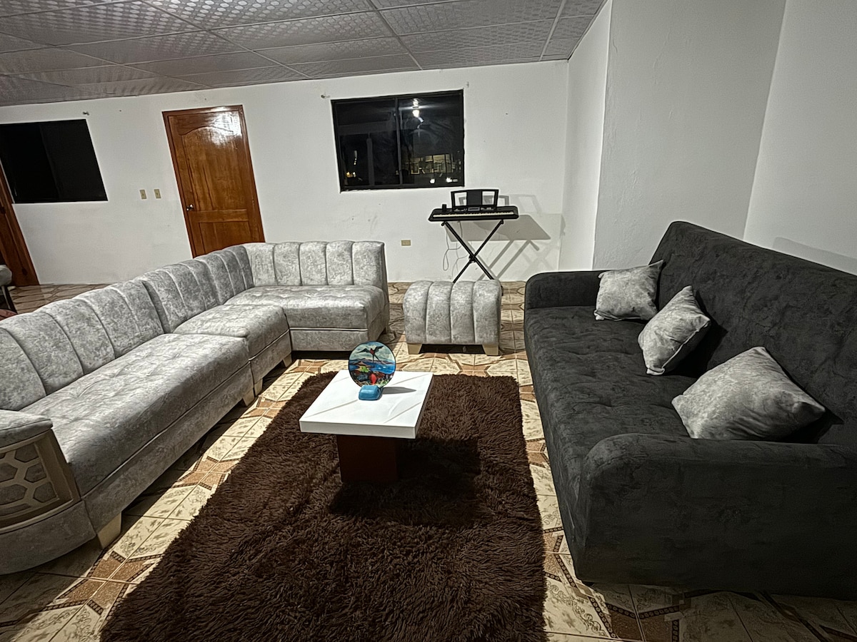Bucură-te de vacanța ta în Galapagos într-un apartament frumos și elegant situat în inima rezidențială a Puerto Ayora, cu camere confortabile și primitoare, un apartament ideal pentru 4 până la 6 persoane, priveliști spectaculoase, aer condiționat și fiecare cameră cu o baie privată care îți va face șederea mai plăcută *Aproape de magazine și restaurante. La 2 străzi distanță ai un mini-market și farmacii. *Ești la 5 străzi mici de stația Charles Darwin, de plajele sale, PNG și orașul principal.