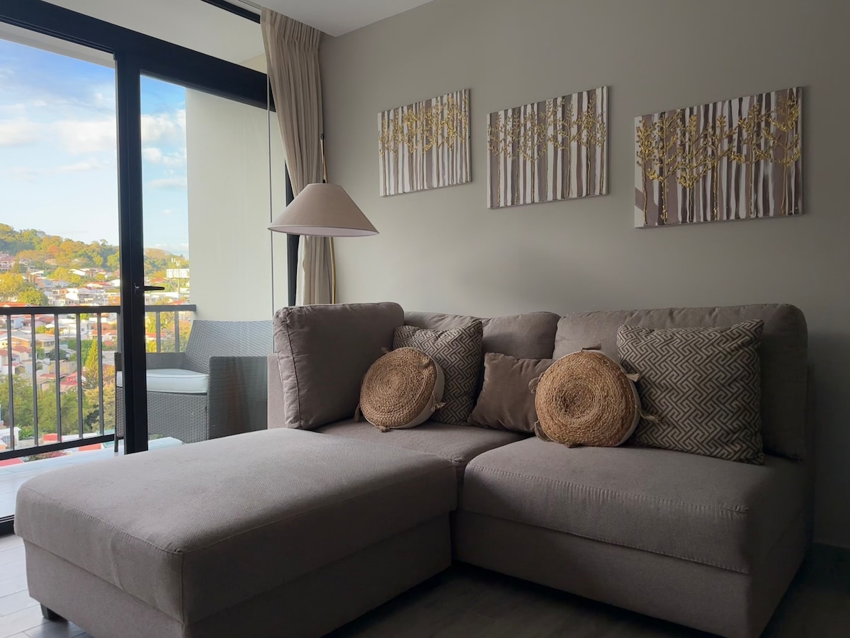 Apartamento nuevo, totalmente equipado y amueblado con una sola cama matrimonial, con decoración moderna pensado en garantizarte una cómoda y agradable estadía. Ideal para relajarte, disfruta de tu café por la mañana en la terraza con una gran vista a la ciudad o disfruta una copa de vino en la noche con la excelente vista a San Salvador. En una zona céntrica, estratégica y segura, cerca de supermercados, centros comerciales. A solo 40 minutos del Aeropuerto,