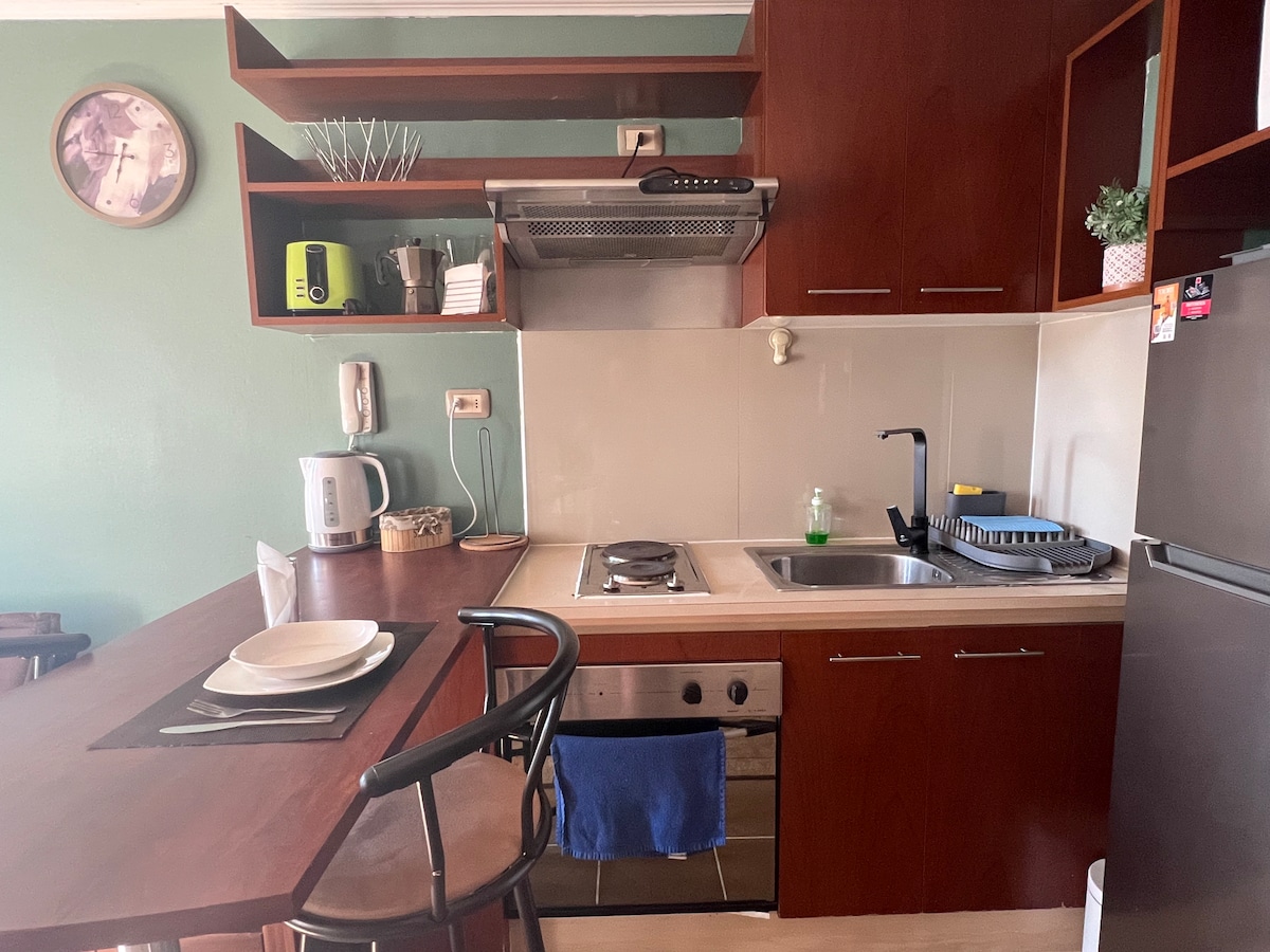 Departamento hermoso y muy cómodo, a pocas cuadras de la gran Alameda y cerro Santa Lucia. Lugar estratégico para movilizarse por Santiago, cerca de hospitales, bancos, centros comerciales. Edificio cuenta con hermosa piscina en el último piso, lavanderia, GYM. Aire acondicionado en dormitorio, freidora de aire, cocina integrada con el comedor, con un estilo moderno y muy acogedor. Muchos detalles que harán de tu estadía un hermoso recuerdo. 🚗 Estacionamiento gratis, en el mismo edifico.