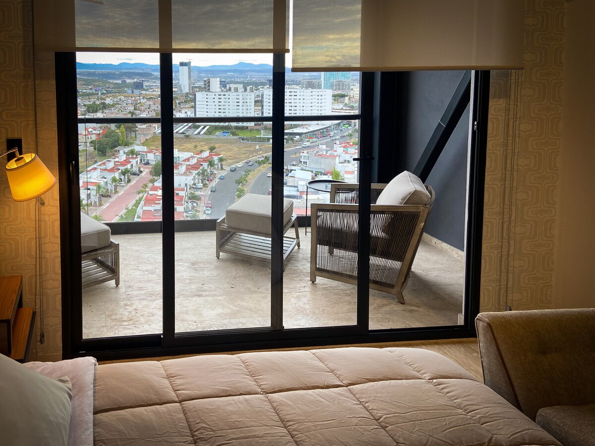 Stylish and comfortable apartment/loft with a great view on the 14th floor in Juriquilla’s best walkable area. Located at steps from UVM, UNAM, Sonora Grill, banks, and a Walmart just around the corner. Features a spacious layout with a top-of-the-line king-size bed, fully equipped kitchen, living and dining room. Enjoy premium amenities: pool, gym, sauna, jacuzzi, and padel court. Ideal for long stays in a walkable and safe neighborhood—this is top comfort at a great value.