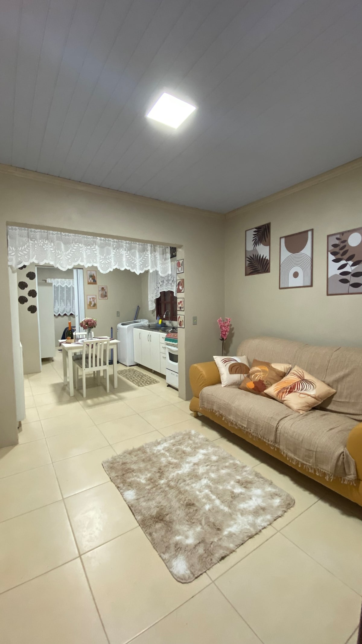 Bucură-te de zile liniștite la munte în acest apartament perfect pentru două persoane. Cu priveliști uimitoare și o atmosferă confortabilă, spațiul oferă echilibrul ideal între confort și simplitate. Relaxează-te, lucrează sau contemplă natura, bucurându-te în același timp de Wi-Fi de mare viteză și de climatul calm al regiunii. Situat la 35 km de Gramado, la 70 km de Porto Alegre. Are un living și bucătărie integrate, 1 dormitor, baie, parcare și garaj.