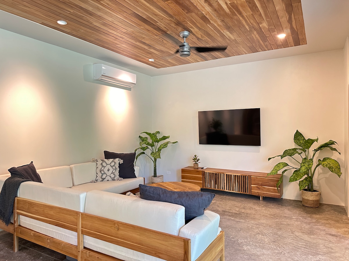 Your treetop beach sanctuary awaits in this chic studio/1BA with modern Moroccan flair. Ideally located near the beach, shops, and dining. Perched on the third floor among lush treetops, it offers privacy, breathtaking views, and occasional visits from howler monkeys. Enjoy a full kitchen, and a private screened veranda with a soaking tub—perfect for couples, friends, or digital nomads.