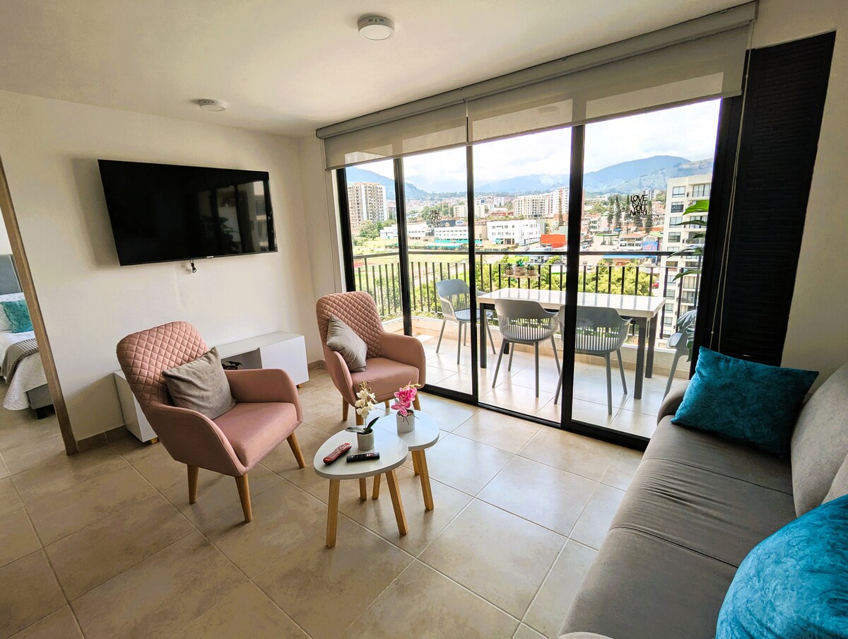 Garsonieră/loft nou și modern, cu acces la principalele locuri ale orașului, depozite, restaurante, la câteva străzi de spital, universitate și depozitul Exito, cu acces facil la serviciul public; Are o bucătărie echipată, electrocasnice noi, duș cu apă caldă, balcon cu vedere frumoasă