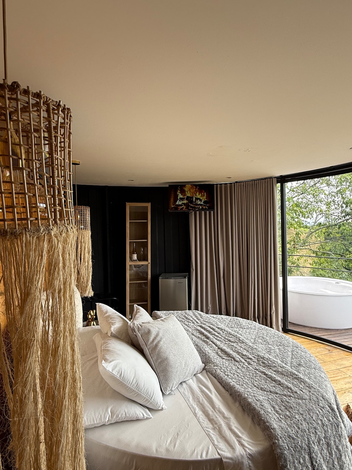 Descoperă Boskoso, o cabană modernă de glamping în mijlocul sanctuarului natural Barbas Bremen, la doar 15 minute de Pereira. Un loc în care cântecul păsărilor, sunetul râului și o cascadă privată creează un mediu magic pentru a te deconecta de zgomot și a te reconecta cu lucrurile esențiale.