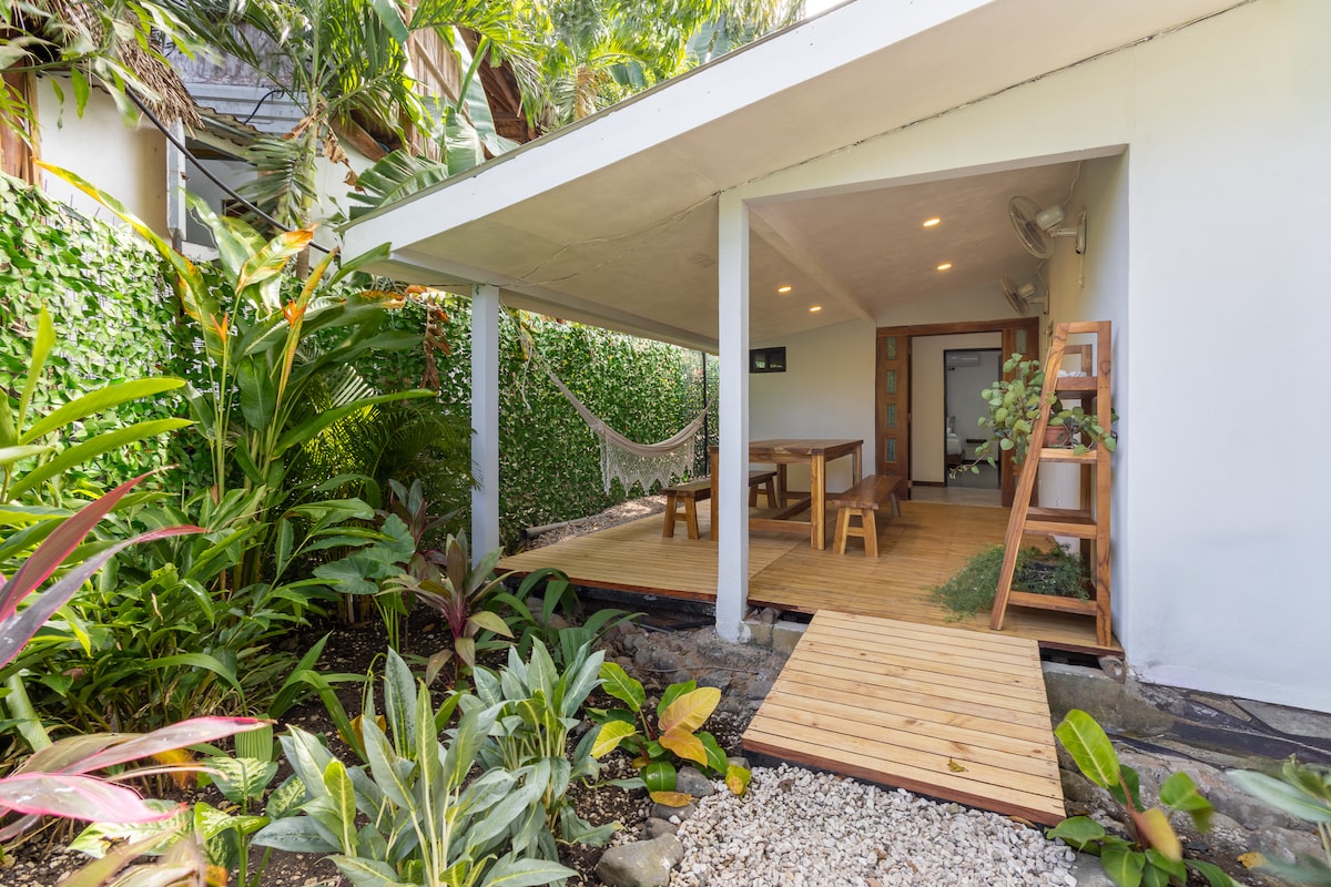 Just MINUTES’ WALK to the BEACHE of Malpais, and only 700m from Santa Teresa’s crossroad, our peaceful escape is perfectly balanced with a lively town vibe. This modern home sits in a lush retreat community with 24h security and a gorgeous shared pool near by restaurants, banks, and shops. The stylish studio features flexible sleeping, exquisite kitchen, cozy living area, and outdoor deck with a superb BBQ grill. Off the main road for peaceful quiet, warmly hosted and loved by guests.