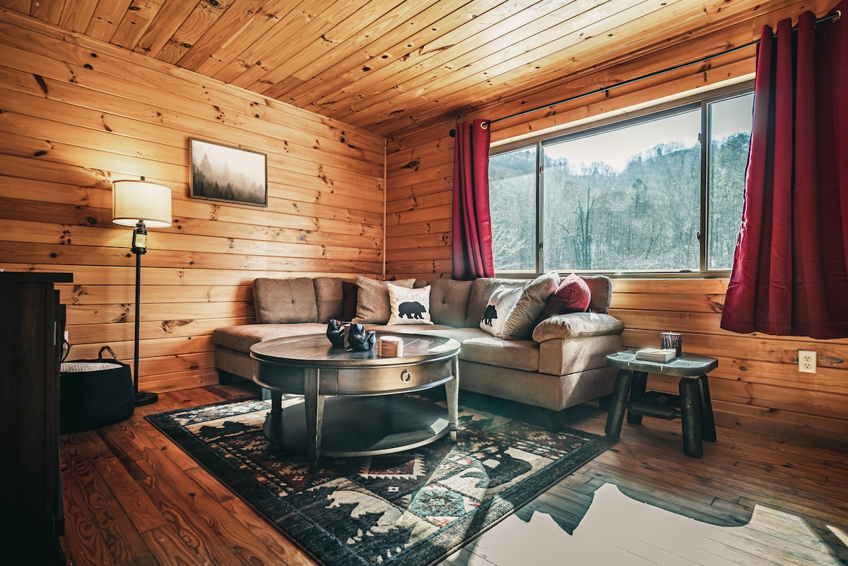 Această locuință personalizată, construită în 2020, este locul perfect pentru relaxare. Situat în afara unui drum privat (tracțiunea integrală nu este necesară), se află pe 4,25 acri, cu priveliști superbe ale Munților Great Smoky. Odată ajuns acolo, te simți cu adevărat îndepărtat de lume. Designul său modern, scandinav-japonez, este unic în zonă. Include: dormitor matrimonial, mansardă de dormit (futon matrimonial și paturi suprapuse personalizate Twin XL); bucătărie deschisă/living, curți interioare acoperite și deschise. La 10 minute de Bryson City și Cherokee.