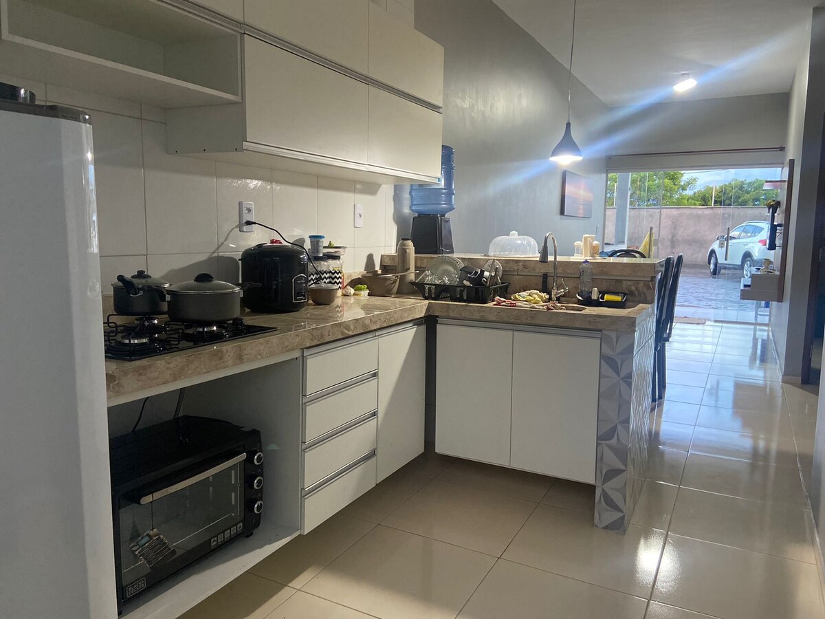 Descoperă Casa Biana, o escapadă în Barreirinhas, în interiorul celei mai bune comunități închise, cu acces la râul Preguiça. Există 4 apartamente , 6 băi, bucătărie completă, piscină, grătar, TV în toate camerele și living cu aer condiționat. Oferă cadrul perfect pentru momente fericite ca familie sau cu prietenii. Include pătuț portabil și scaun pentru alimente. Lângă o plajă privată și la 7 minute de centrul orașului, casa noastră este baza ideală pentru explorarea farmecelor locale și a Lençóis Maranhenses. Trăiască magia!