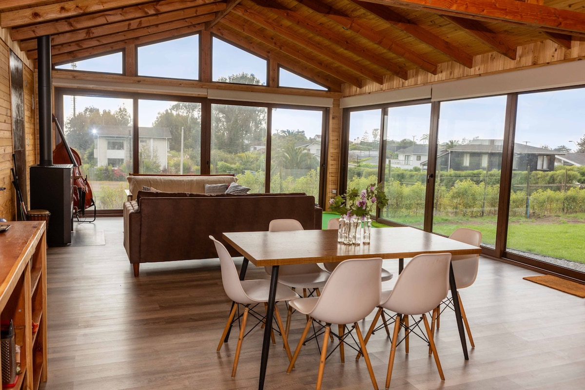 Located in La Boca, this eco-friendly home offers breathtaking views of Tunquén beach, the valley and the protected wetlands, surrounded by nature that invites peace, rest and wildlife observation. Spacious and comfortable, the house accommodates up to 7–8 guests and runs on clean, renewable energy. Just 90 minutes from Santiago and 45 minutes from Valparaíso, it is an ideal escape for those seeking tranquility, nature and stunning ocean views.