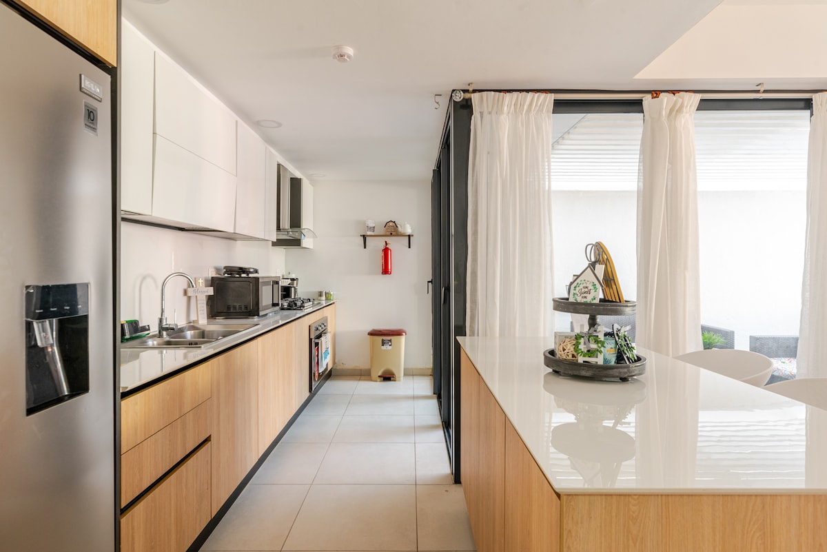 Vino și bucură-te de apartamentul nostru complet echipat cu 1 dormitor, situat în centrul orașului Santo Domingo și la o distanță de mers pe jos de principalele centre comerciale ale orașului. - Apartamentul este în întregime al tău. - 1 loc de parcare disponibil. - Un dormitor cu pat matrimonial, saltea, cearșafuri, mângâietor și perne - Televizor LED inteligent numai în living. - Baie modernă. - A/C în dormitor și în camera de zi. - Mașină de spălat și uscător. - Bucătărie completă.
