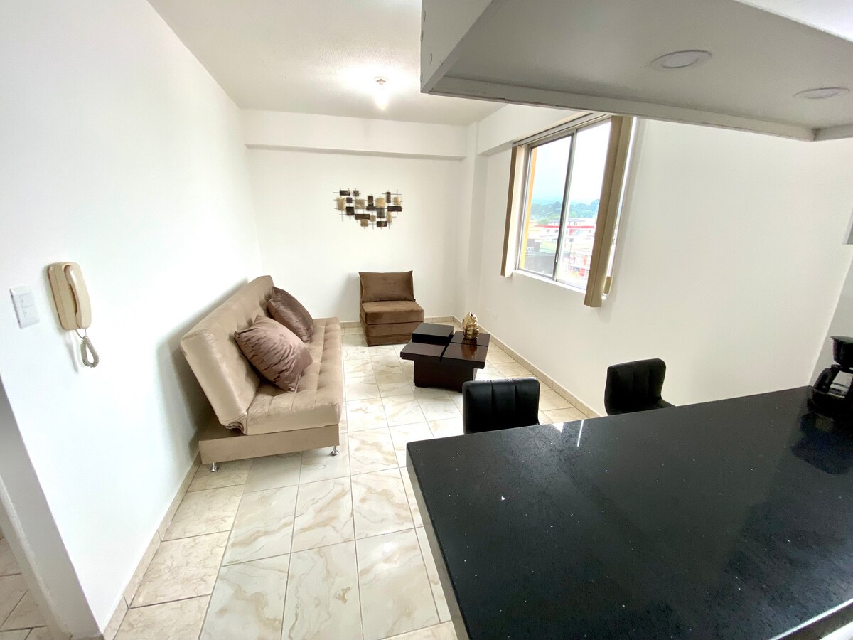 Bucură-te de o ședere confortabilă și sigură în acest apartament premium, cu design elegant, ideal pentru călătorii de afaceri, familii mici sau șederi de durată medie. Situat în Torres Zermatt, o clădire modernă cu portar non-stop, camere de supraveghere, lift și parcare. 📍 Locație strategică: • La 5 minute de stația de autobuz • Aproape de Banco Pichincha și de Registrul Civil • AKI, KYWI, Super Éxito, KFC, Tuti se află la câțiva pași.