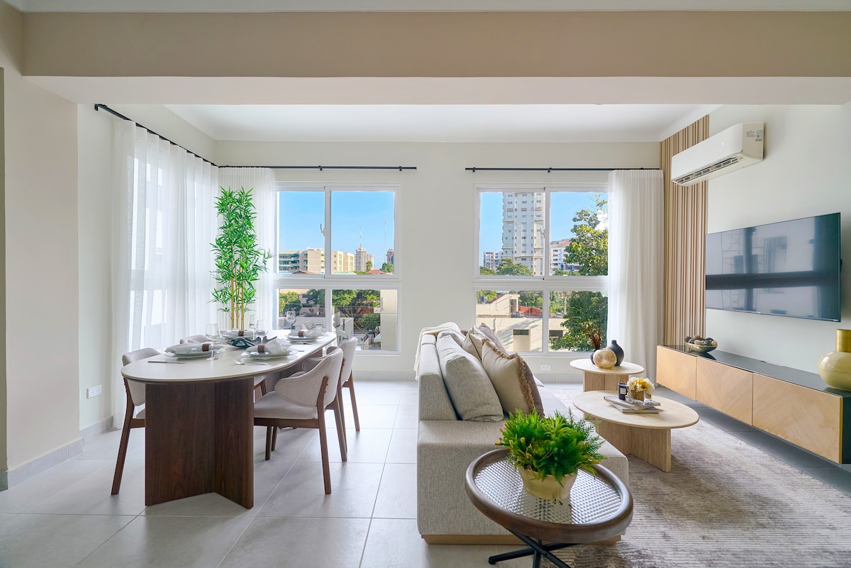 Apartament modern și industrial, nou, spațios, cu 3 etaje, mansardă, fereastră dublă cu vedere la oraș și la mare. Situat într-una dintre cele mai sigure și accesibile zone din orașul Santo Domingo. 25 Minute de aeroport, 5-10 minute de la cele mai mari restaurante și atracții de noapte ca La Gloria, Central Gastronómica, Pepperoni, Teatrul Nacional, Bellas Artes și Centro Olimpico parc, cele mai bune spitale și universități