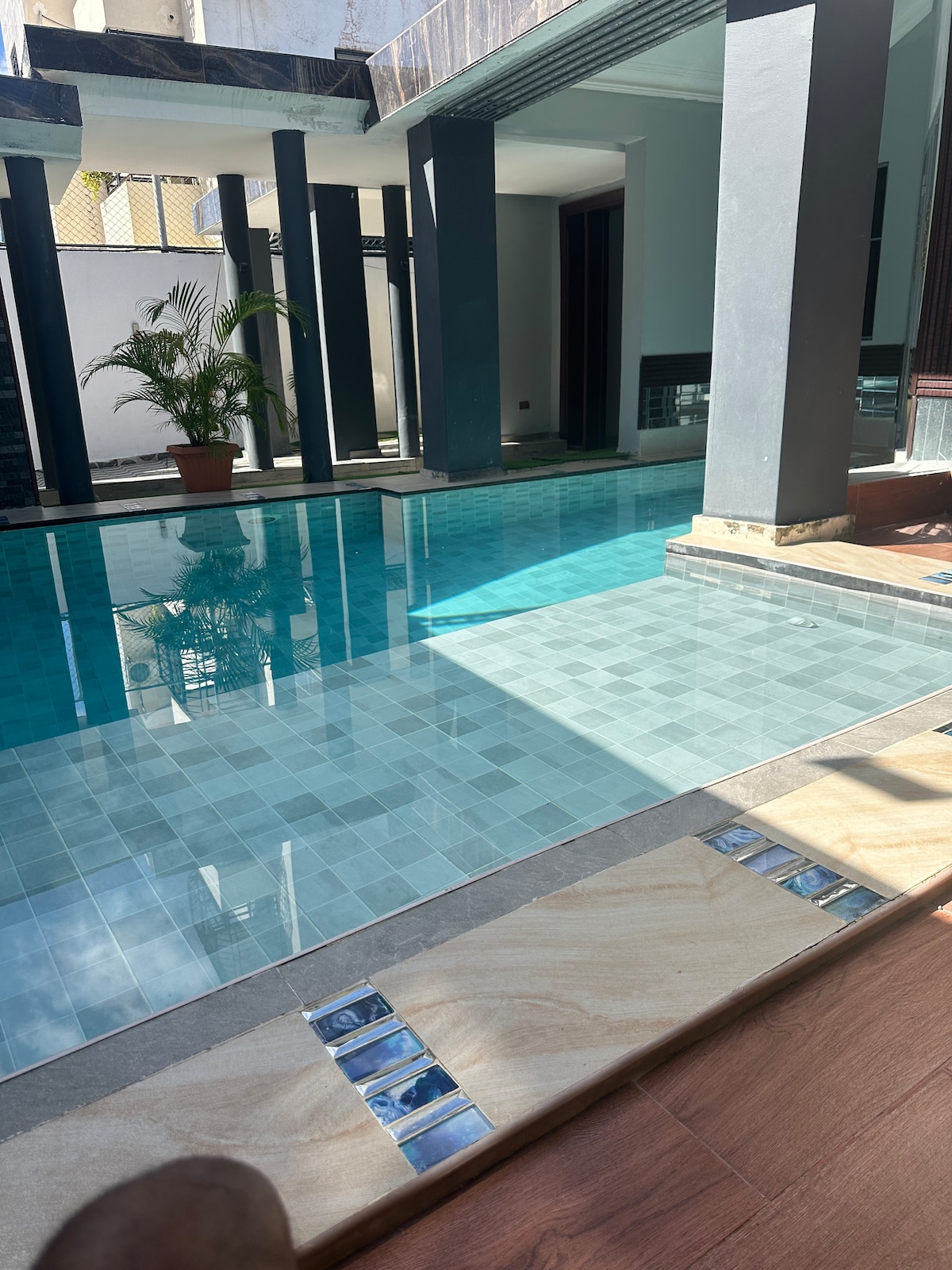 Relaxează-te cu întreaga familie în acest loc liniștit și frumos. Deconectează-te de la rutină și vino și bucură-te de acest mic colț situat într-un apartament în complex rezidențial sigur și liniștit. Acest apartament are terasă privată cu jacuzzi exclusiv pentru oaspeții de la etajul 5. Dacă îți place ceva mai mare, avem, de asemenea, o piscină frumoasă pentru uz comun. Te poți distra și face exerciții fizice în același timp cu terenul de baschet și zona pentru copii