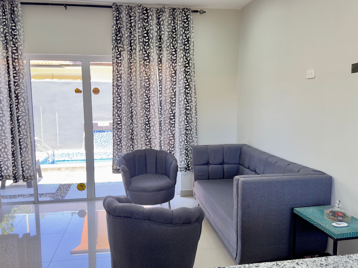 El refugio de Grace es un lugar tranquilo y acogedor en el que se sentirá relajado y conectado con la naturaleza. Tendrá seguridad y todas comodidades que necesita. Será una experiencia inolvidable que va a querer repetir. Llegará caminando a la playa en 3 minutos, tiene el aeropuerto a 15 minutos en vehículo y el centro de la ciudad a 30 minutos en vehículo. El apartamento está completamente amueblado y cuenta con todas las amenidades.