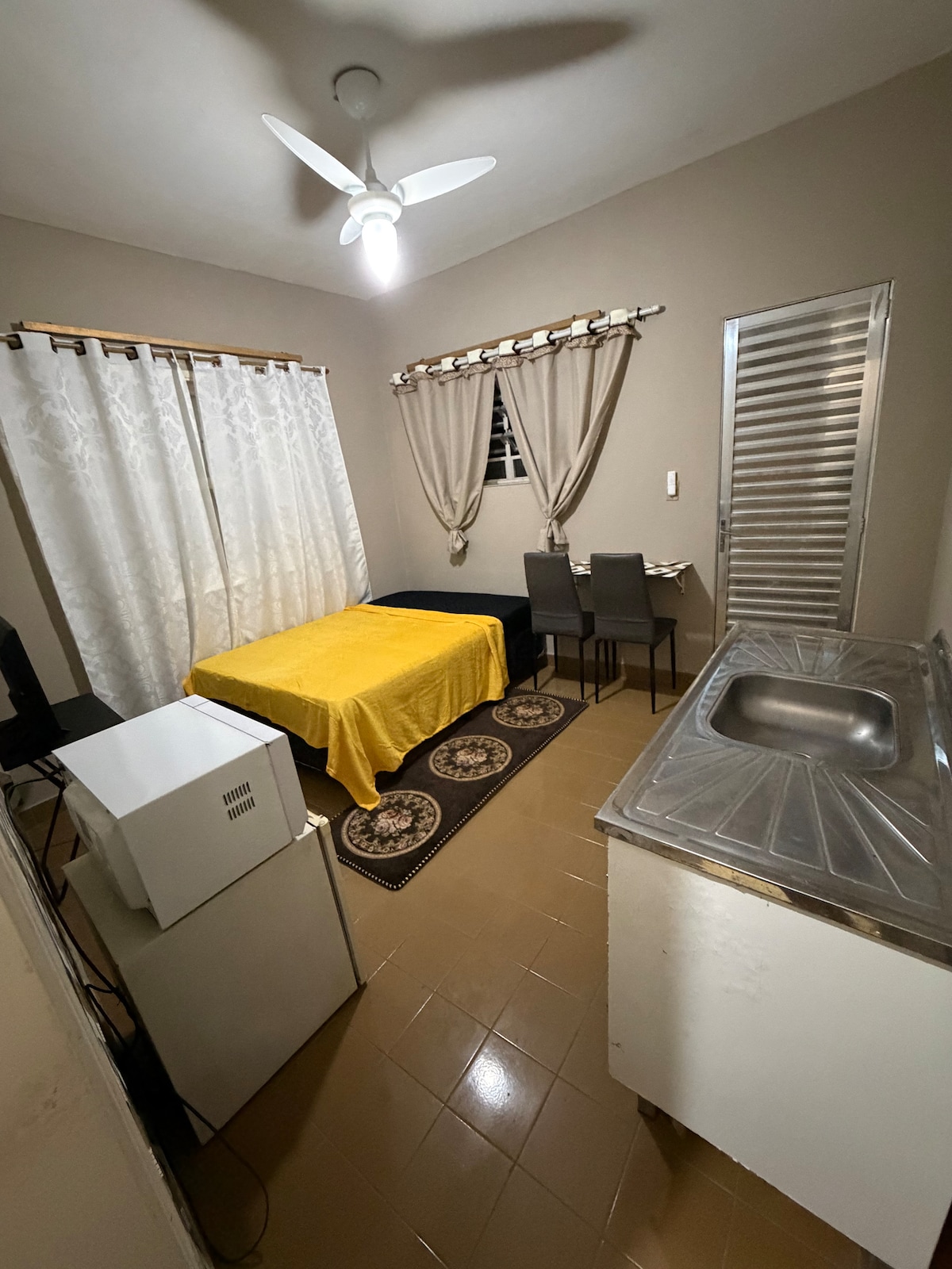 * Ora de check-in flexibilă, dar tariful zilnic este de 24 de ore din momentul intrării. *Kitnet ideal pentru cei care doresc să aibă un spațiu pentru scăldat, mese și odihnă de noapte. *Saltea și perne protejate de huse, care sunt igienizate după fiecare check-out. *NU există SPAȚIU DE PARCARE PENTRU MAȘINĂ în interiorul proprietății, poți parca în fața casei. *SCAUN PENTRU MOTOCICLETĂ Pat cu saltea dublă, cu o canapea extensibilă pentru 2 persoane în living pentru a găzdui un al treilea oaspete suplimentar