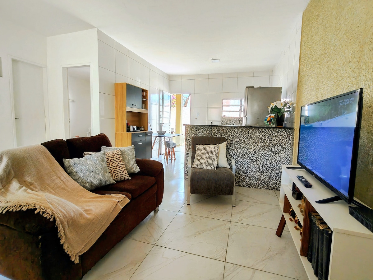A atmosfera é a de voltar ao lar. Redários estão espalhados pelo jardim, junto a flores, ervas e uma imensa mangueira alta e farta, recheada de sementes. O riacho que atravessa esse mesmo jardim, lembra a melodia ancestral das águas, em ressonância com o som do mar, que pulsa do outro lado da rua. Os serviços estão todos próximos, assim como a praça central. Sejam bem-vind_s!