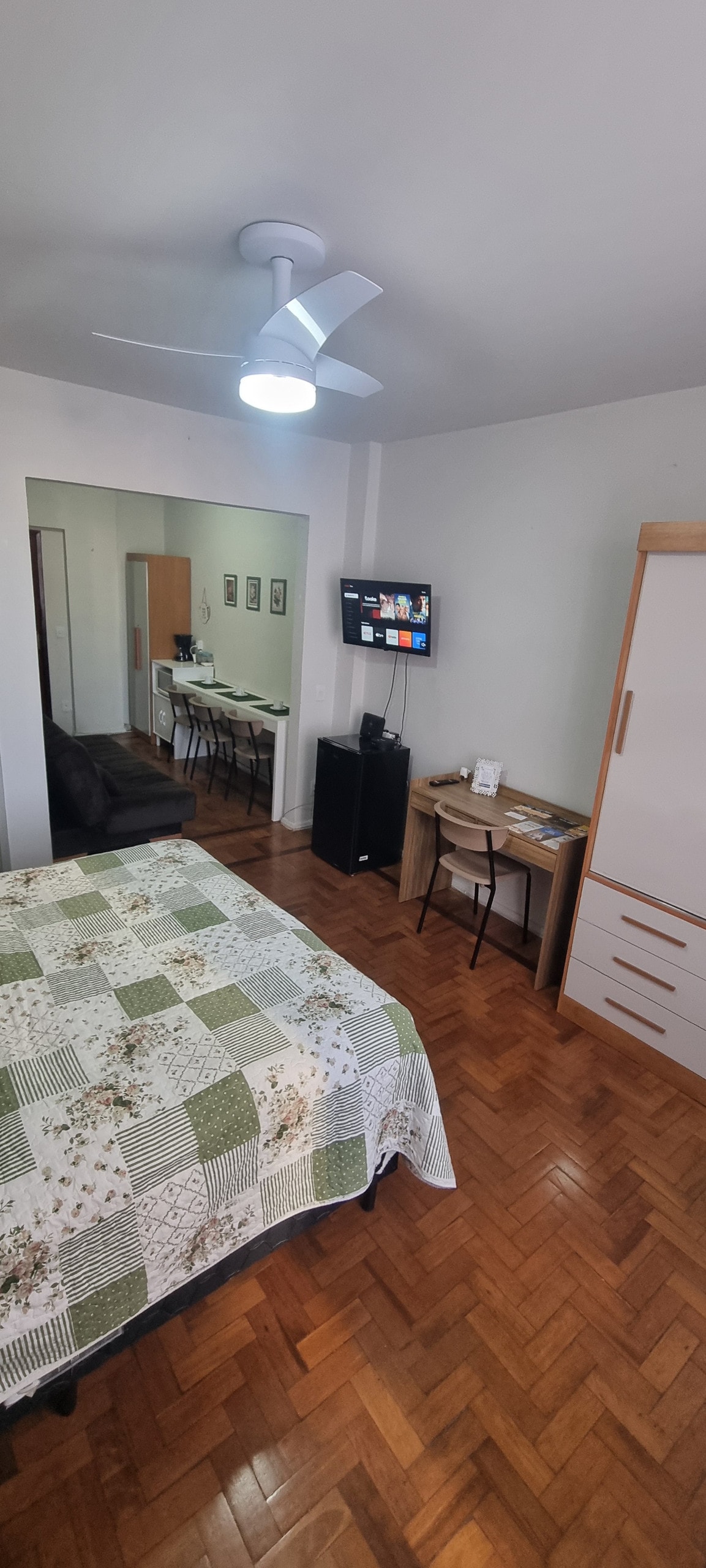 Sua família vai estar perto de tudo ao ficar neste lugar bem-localizado, 5min a pé do centro de São Lourenço, porém em rua tranquila. Quarto com cama de casal e possibilidade de colocar um colchão de solteiro. Sala com sofá-cama, televisão, mesa com dois bancos para fazerem as refeições. A cozinha é equipada de microondas, cafeteira, panela elétrica (grande), liquidificador, frigobar e sanduicheira. (Não temos fogão!) Banheiro novo, todo reformado. Wifi de 320MB disponível e televisão.