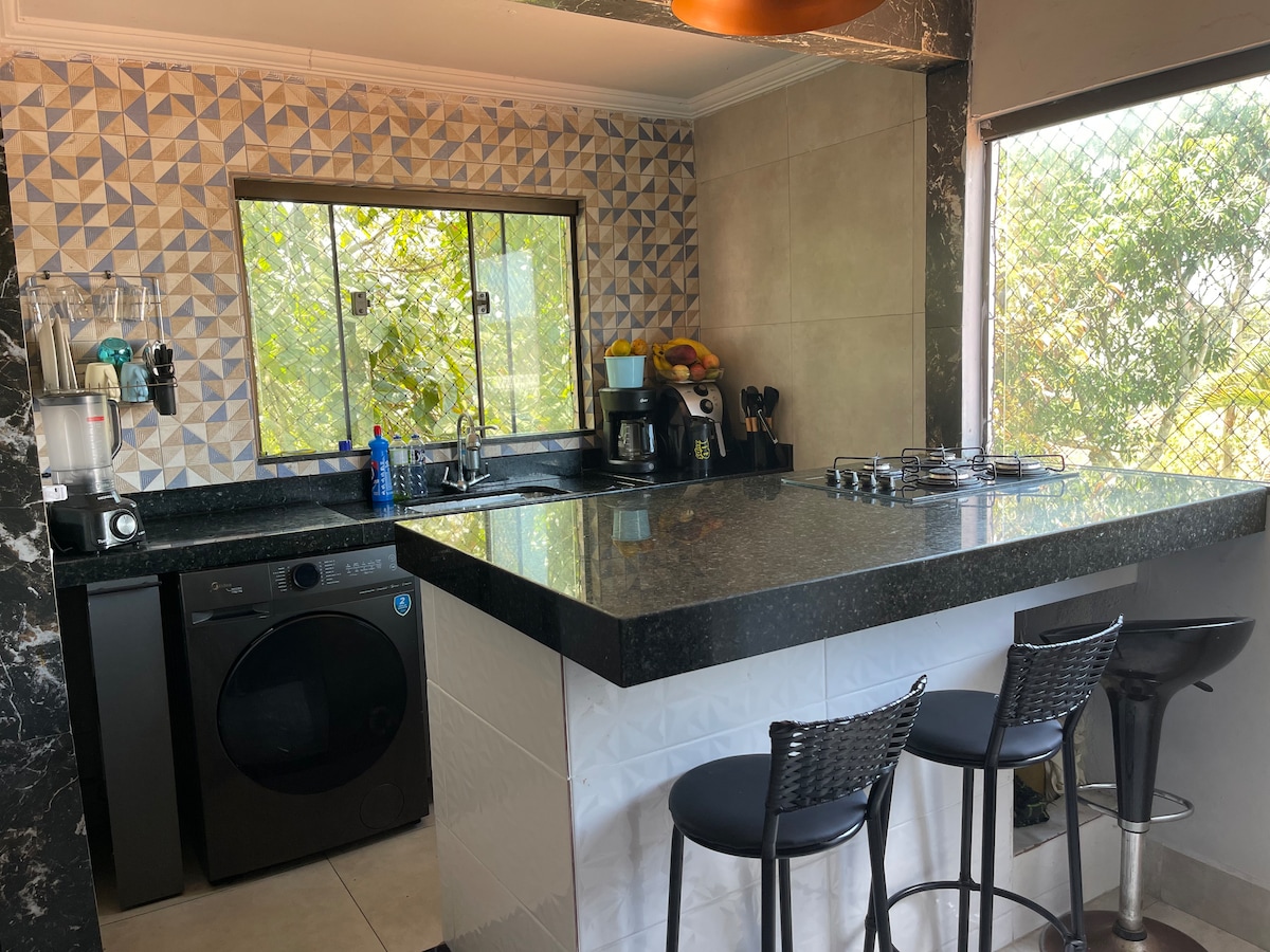 Casa perfectă pentru cazarea familiilor și grupurilor de prieteni. Până la 8 persoane. Spațios, garaj (2 locuri), living, 3 dormitoare cu aer condiționat (1 apartament), cameră TV cu canapea extensibilă, bucătărie completă, baie socială, spălătorie și balcon mare. Wi-Fi, Netflix, PrimeVideo și ClaroTV disponibile! Aproape de supermarketuri, Havan, brutărie și alte facilități. Este la mai puțin de 1 minut de Rod. Dep. Márcio Corrêa, RJ-140, la 10 minute de centrul orașului São Pedro da Aldeia și la 20 de minute de centrul orașului Cabo Frio.