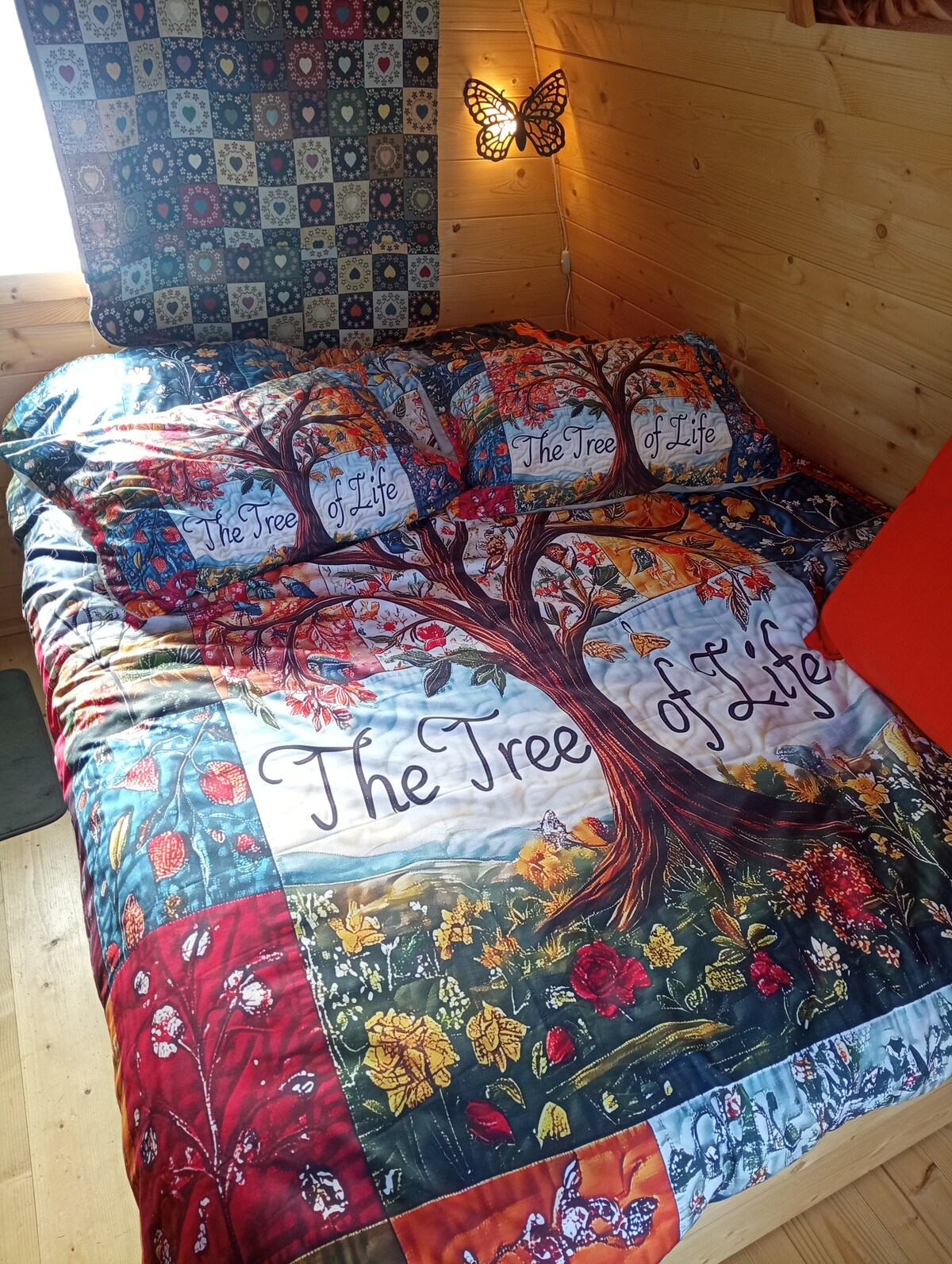În partea de jos a grădinii, coliba de lemn de sub copaci, cu terasa pe picioroange, adăpostul pentru zona de duș și toaleta uscată din spatele ușii inimii. Două paturi unul lângă altul, separate sau aproape împreună pentru a dormi în visul său din copilărie... și pentru a sta timp de 4 ani , împreună cu familia sau prietenii, cortul Hummingbird în camera alăturată pentru încă 2 persoane