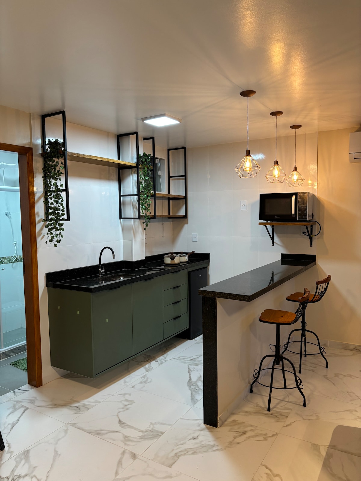 Loft complet și confortabil, înconjurat de natură și situat la doar 7 minute de plaja Itaúna. Ideal pentru cei care doresc să se bucure de evenimentele orașului, să se bucure de mare în timpul zilei și să se odihnească în liniște și pace noaptea. Mediu intim, aerisit, cu vedere la zona verde 🌿 Perfect pentru cupluri, sportivi și oaspeți care caută caracter practic și o locație bună.