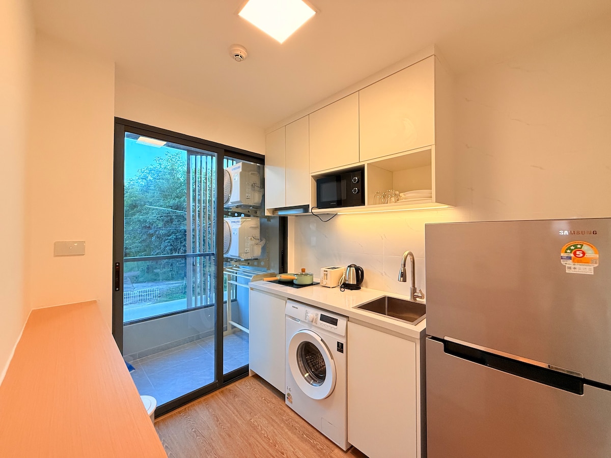 概要 该房源二室一厅,宽敞明亮,配套齐全,同时可以俯瞰素贴山景,非常适合情侣或单身旅行 【特点】 清迈知名网红公寓,公寓位于长康路上,清迈繁华的黄金商业地段; 清迈稀缺的高楼层公寓; 楼顶可以欣赏清迈城的日出和日落风景,不可错过; 清迈唯一的附带空中庭院的公寓; 顶楼超长150米山景无边泳池; 项目拥有清迈最高级的物业管理。 【周边配套】: - 距离长康路夜市1公里,步行10分钟 - 距离古城1.3公里 配有冰箱,厨房设备;洗衣机,电视,微波炉,热水壶家电齐全。另外,房间有独立小阳台,希望给您带来轻松愉快的入住体验! ①.滚筒式全自动洗衣机,便捷轻松! 2.干湿分离的独立洗手间热水器,也帮您准备洗发膏沐浴露! ③.开放式小厨房,微波炉锅铲,冰箱等厨房用品! 4.房间有高速wifi,无论你办公还是看视频都轻松拿捏! ⑤.1.8米大床+1米小床+地板地垫,可轻松容纳2-4人入住!