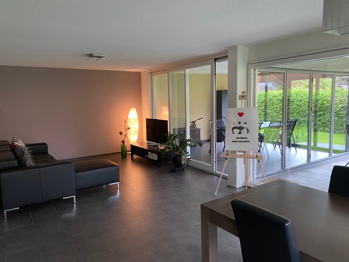 Vă oferim în casa noastră de 3 generații un apartament recent renovat cu 3,5 camere la parter, cu propriul scaun mare. Dotările includ: - 1 cameră cu pat dublu - 1 cameră cu pat supraetajat (140 cm în partea de jos, 90 cm în partea de sus) - Pat pliant 90 cm - Pat de călătorie pentru copii, la cerere - Bucătărie complet utilată - Grătar pe gaz - Duș/toaletă - Wi-Fi - Televiziune prin satelit și internet - Cutie de siguranță - Mașină de spălat/pahar numai la cerere Proprietarul locuiește în partea de sus a casei și va fi disponibil în orice moment.