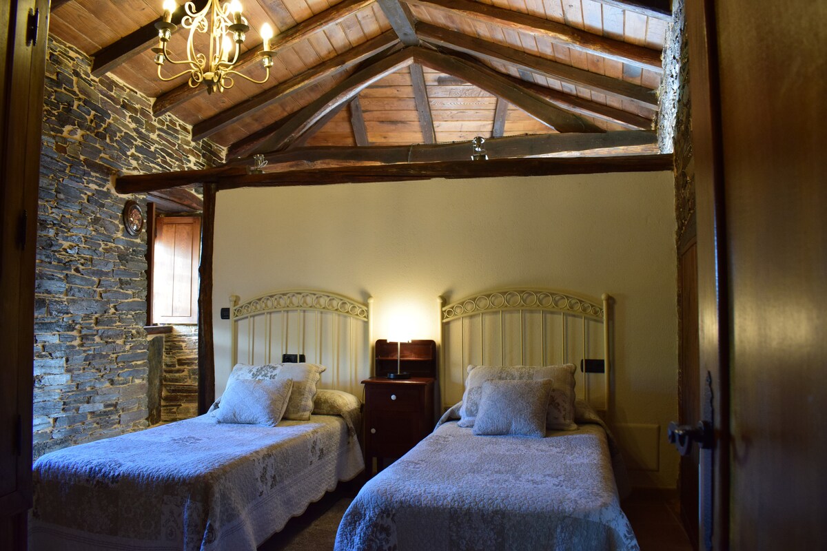 Casă turistică rurală, încadrată într-un peisaj montan natural din Galicia, lângă Sierra de O Courel și munții O Incio. Casă confortabilă, intimă, ideală pentru odihnă, deconectare de la oraș și pentru a te bucura de plăcerile naturii ca cuplu, cu copii și animale de companie sau cu prietenii și în grupuri mari. Casă restaurată prin păstrarea manuală a structurii și a pereților de piatră, mobilier din lemn și cu șemineu, lareira, curte interioară imensă, coridor, spațiozitate și multă lumină.