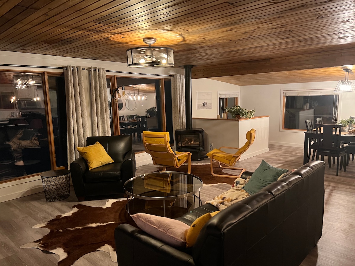 Cabana remodelată din fața lacului 4 dormitoare/2,5 băi este o escapadă perfectă pentru întreaga ta familie în frumosul parc regional Morin Lake. Cabana noastră confortabilă găzduiește 10 persoane (maxim 6 adulți) și a fost proiectată ținând cont de familii; din sala noastră de teatru, zona pentru copii, colțul de lectură și lacul la doar câțiva pași. Grătar pe terasa din față, confortabil lângă șemineu sau stai pe balcon și pur și simplu bucură-te de priveliște. Ne aflăm chiar lângă plaja principală și la doar câțiva pași de terenul de joacă.