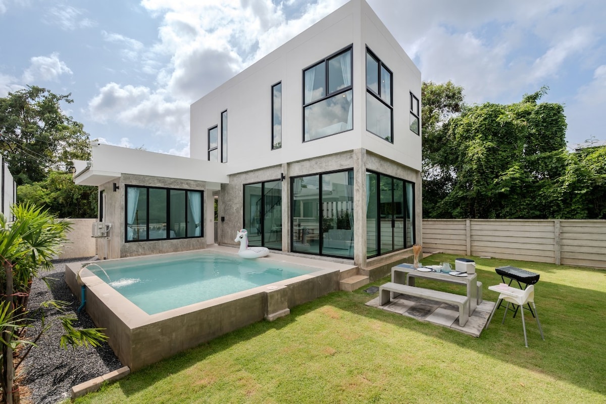 Aceasta este o vilă liniștită și spațioasă, nou-nouță, care va fi lansată în octombrie 2023 și este nou-nouță☀️☀️☀️.Stai mai mult de 3 nopți, oferă-ți un mic dejun plutitor și poți organiza o petrecere la piscină înainte de ora 22:00 pentru a avea o vacanță plăcută.O bucătărie spațioasă și un living cu cadă și o piscină privată îți oferă un mediu de viață relaxant și plăcut.Există o cameră privată cu bonă, un pătuț și un scaun.Serviciul de mic dejun sau cină al bucătarului thailandez poate fi furnizat în timpul șederii la un cost separat.Trebuie să închiriezi o mașină sau o motocicletă, îți vom recomanda datele de contact ale magazinului auto.Curățenia electrică, apa și curățenia zilnică sunt incluse în preț.