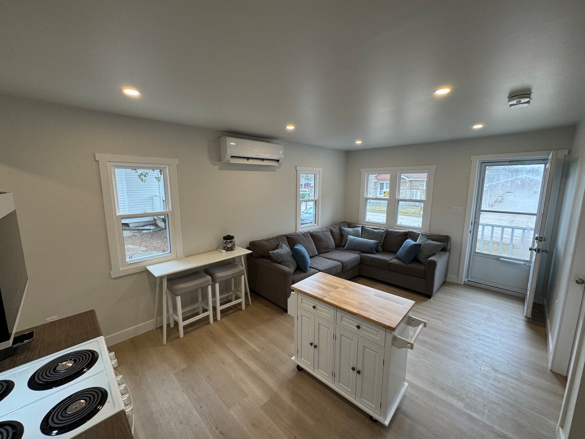 Bine ai venit la Sunny Side Up, un apartament recent renovat, 2 bdrm, complet mobilat, în inima orașului Wiarton. Doar o plimbare scurtă până la Bluewater Park, care este situat pe malul golfului georgian. Unde găsești plaja, stropirea, piscina, locul de joacă, zona de picnic, restaurantul Dockside și traseul Bruce. Include WI-FI gratuit, AER condiționat portabil, TV inteligent cu Netflix și Disney+, lenjerie de pat proaspătă, prosoape pufoase, o bucătărie complet aprovizionată, balcon privat cu grătar și masă de foc, parcare gratuită.