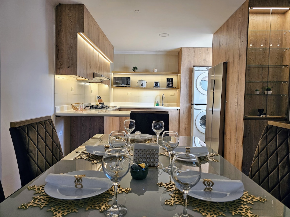 Modern, elegant și cu priveliști uimitoare Bucură-te de o experiență unică în cazarea noastră complet echipată, ideală pentru familii, cupluri sau călători care caută confort și stil. Acest spațiu modern oferă un decor sofisticat, priveliști minunate ale orașului și tot confortul de care ai nevoie pentru a te simți ca acasă. Bucătărie completă, zone comune confortabile și detalii atente pentru odihna ta. Perfect pentru cei care apreciază designul bun, funcționalitatea și o locație excelentă.